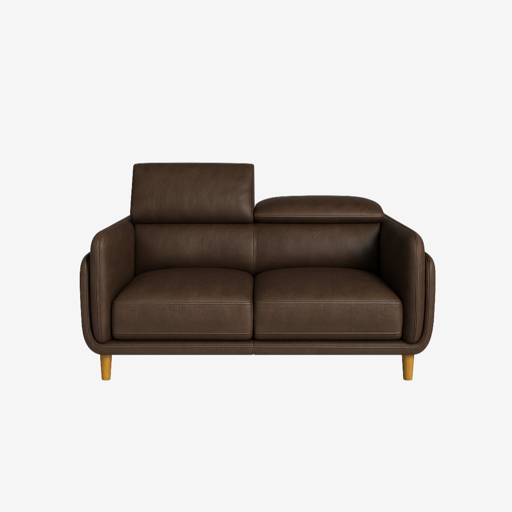The Cairo 2 Seater Leather Sofa blends minimalist style with daily comfort. Its high backrest and adjustable headrest provide support, while softly rounded armrests create calm. Sleek leather upholstery adds a modern edge to its serene design.