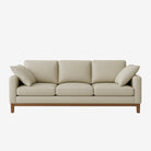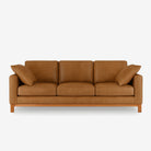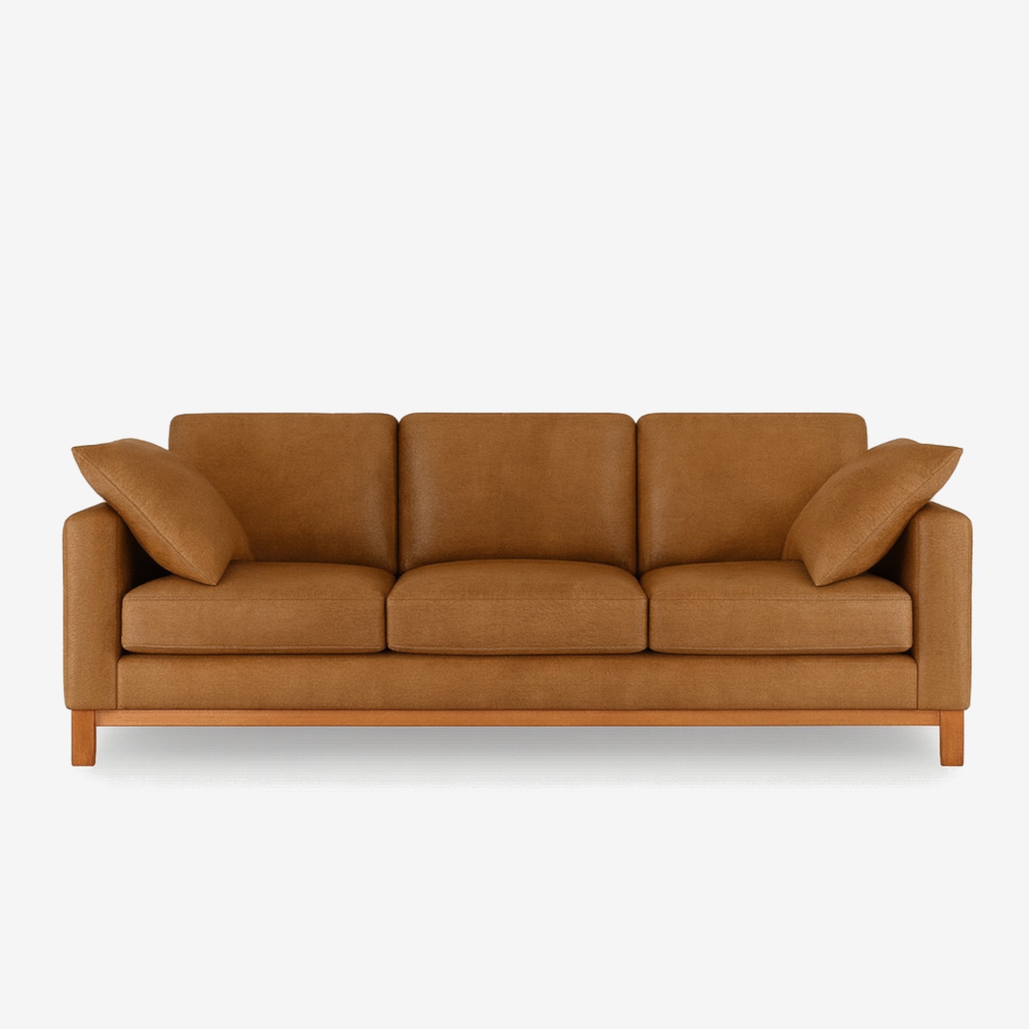 The Noah 3 Seater Leather Sofa pairs clean design with everyday comfort. High-density foam cushions and leather upholstery provide supportive lounging, while solid wood legs lend warmth and a grounded, natural charm to its clean-lined silhouette.