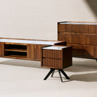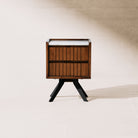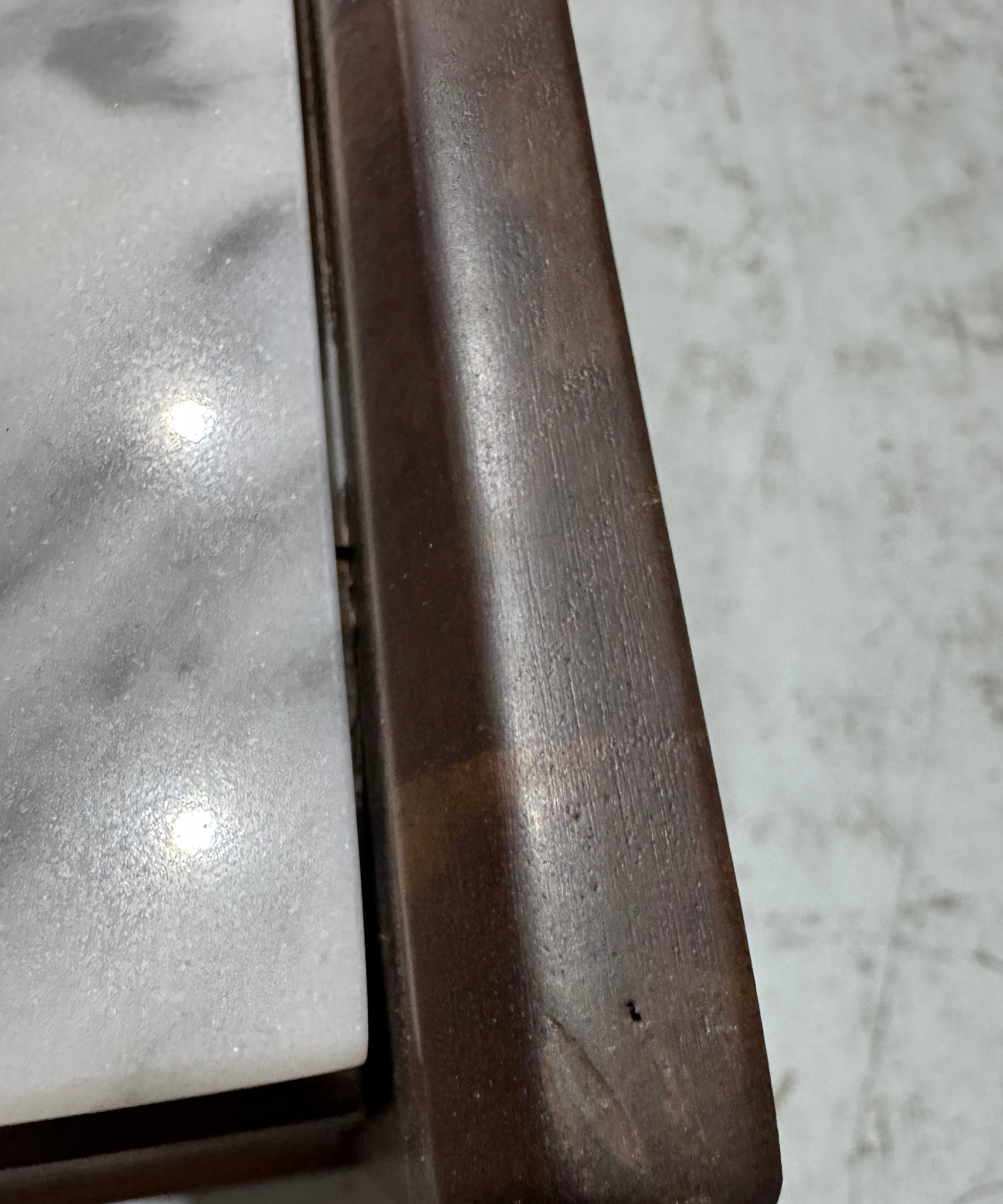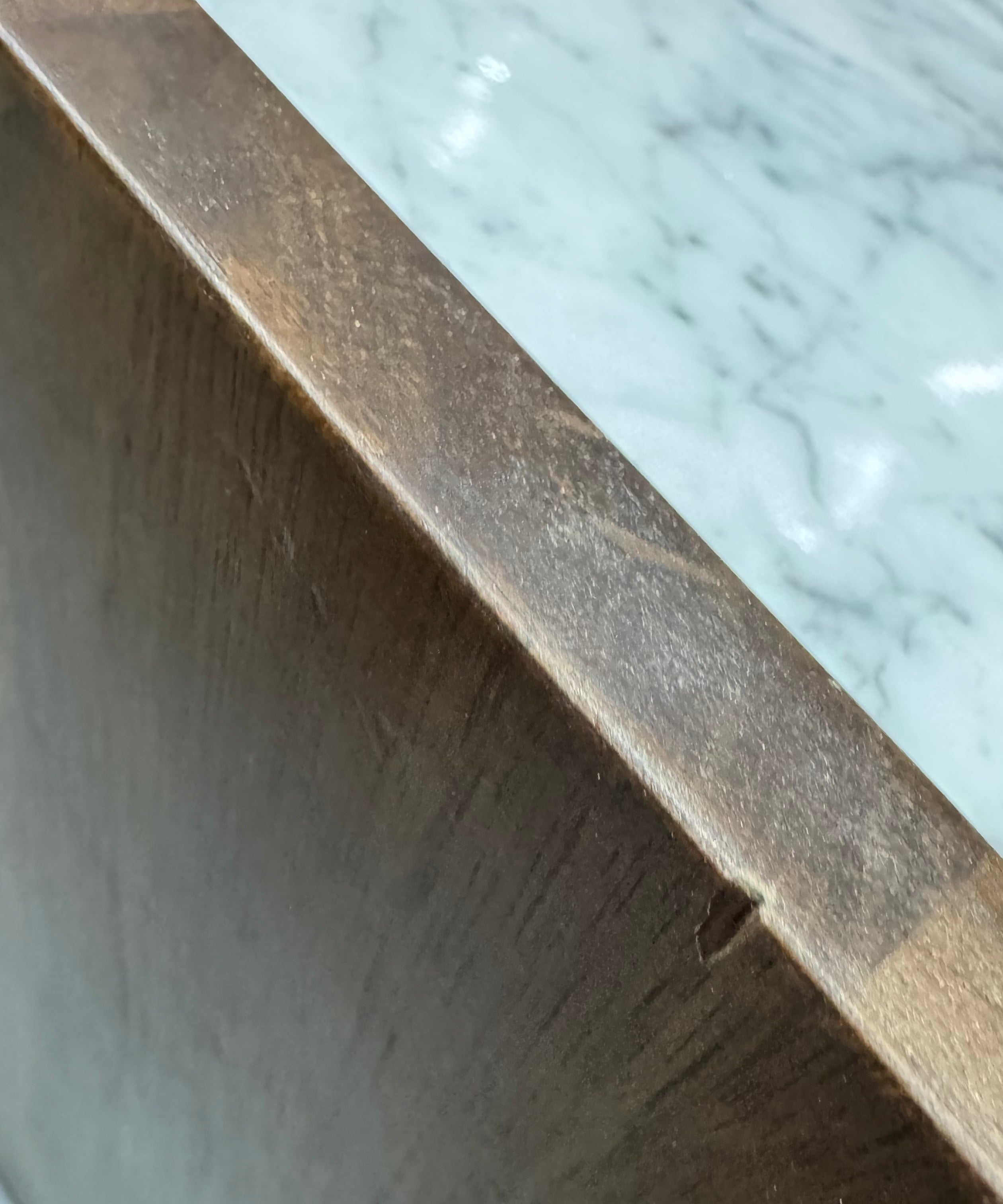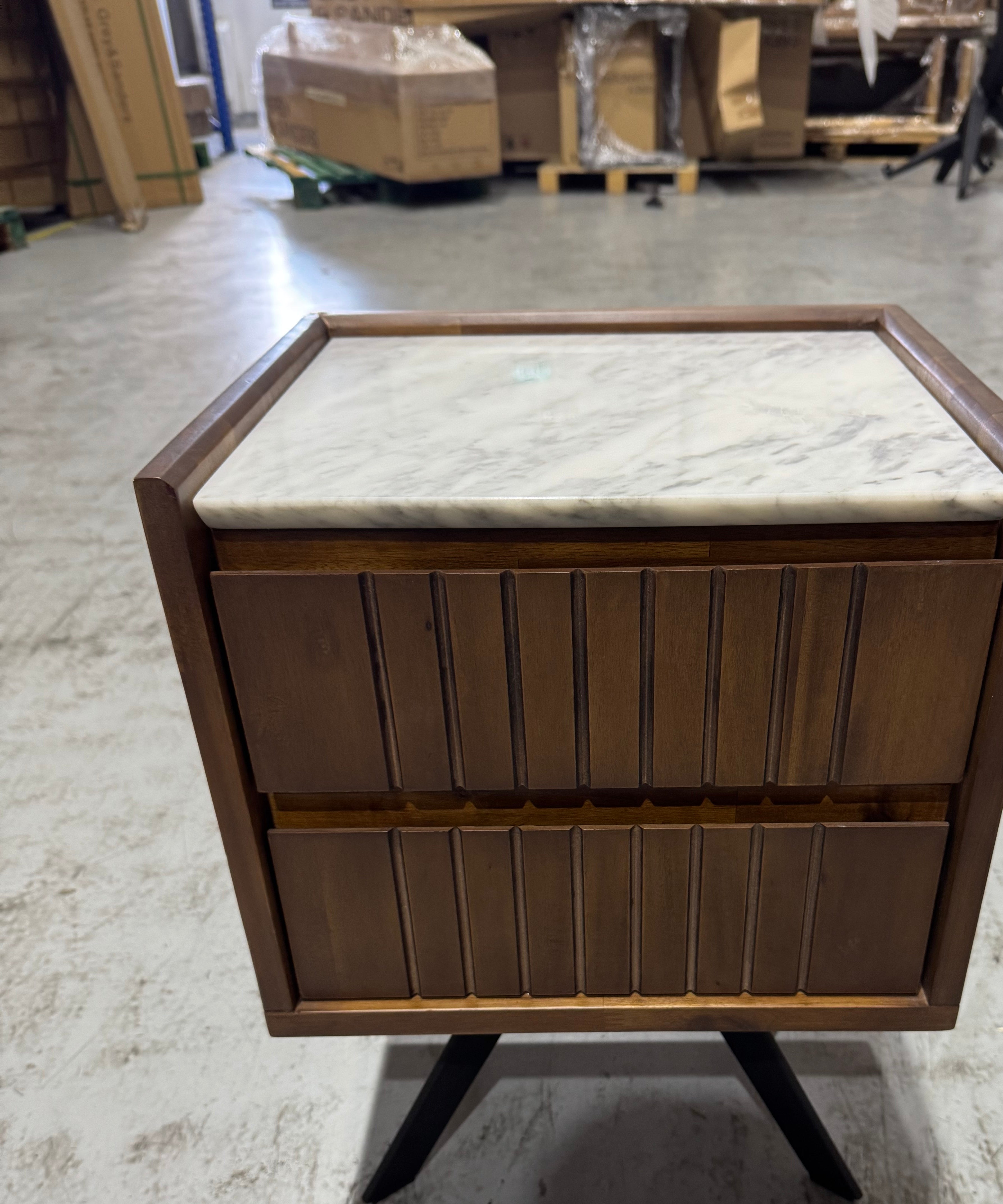 The Hudson Bedside Table features a sleek, low-profile design with clean lines and soft curves. Topped with Carrara marble for a refined touch, its compact size fits easily into any bedroom style while keeping nighttime essentials within reach.
