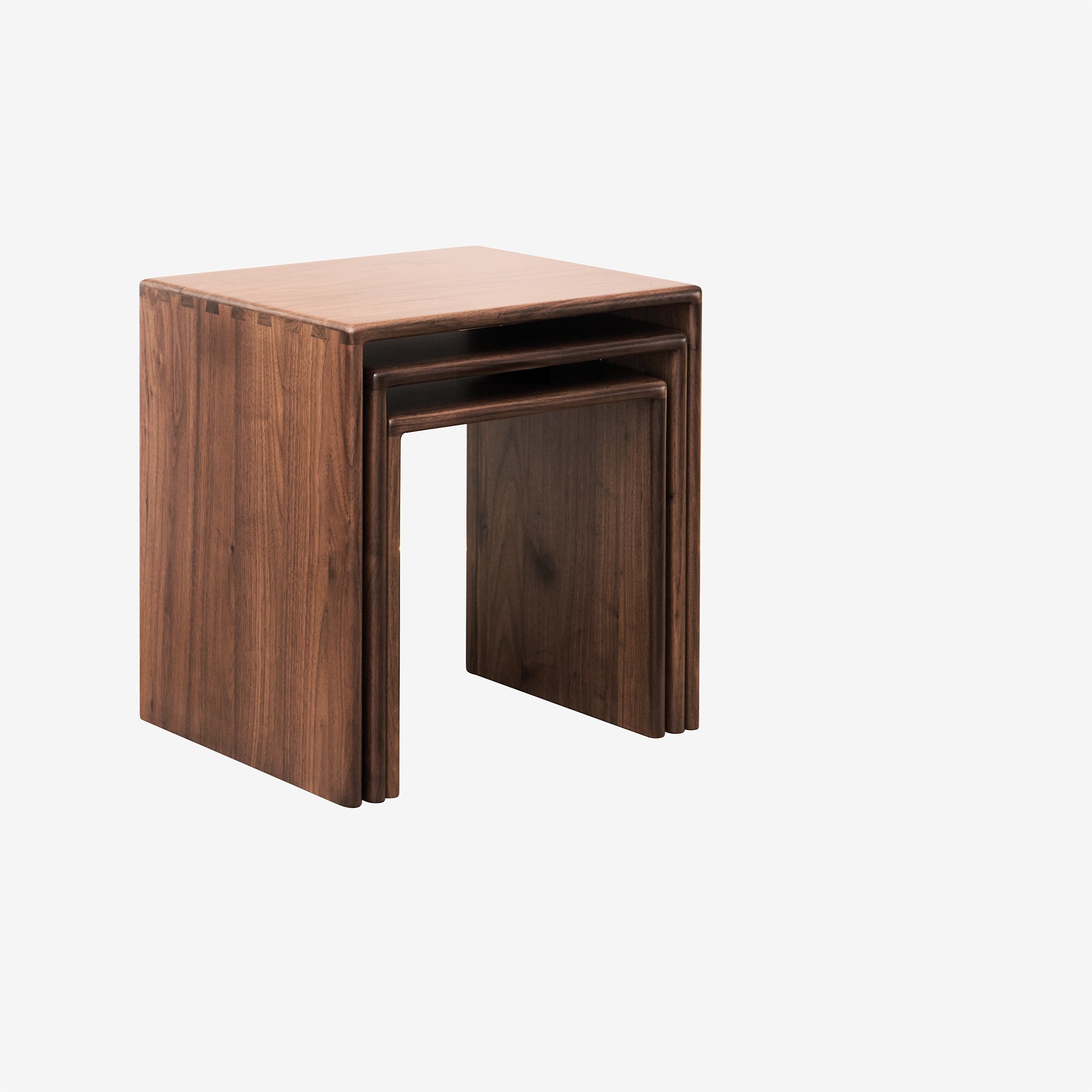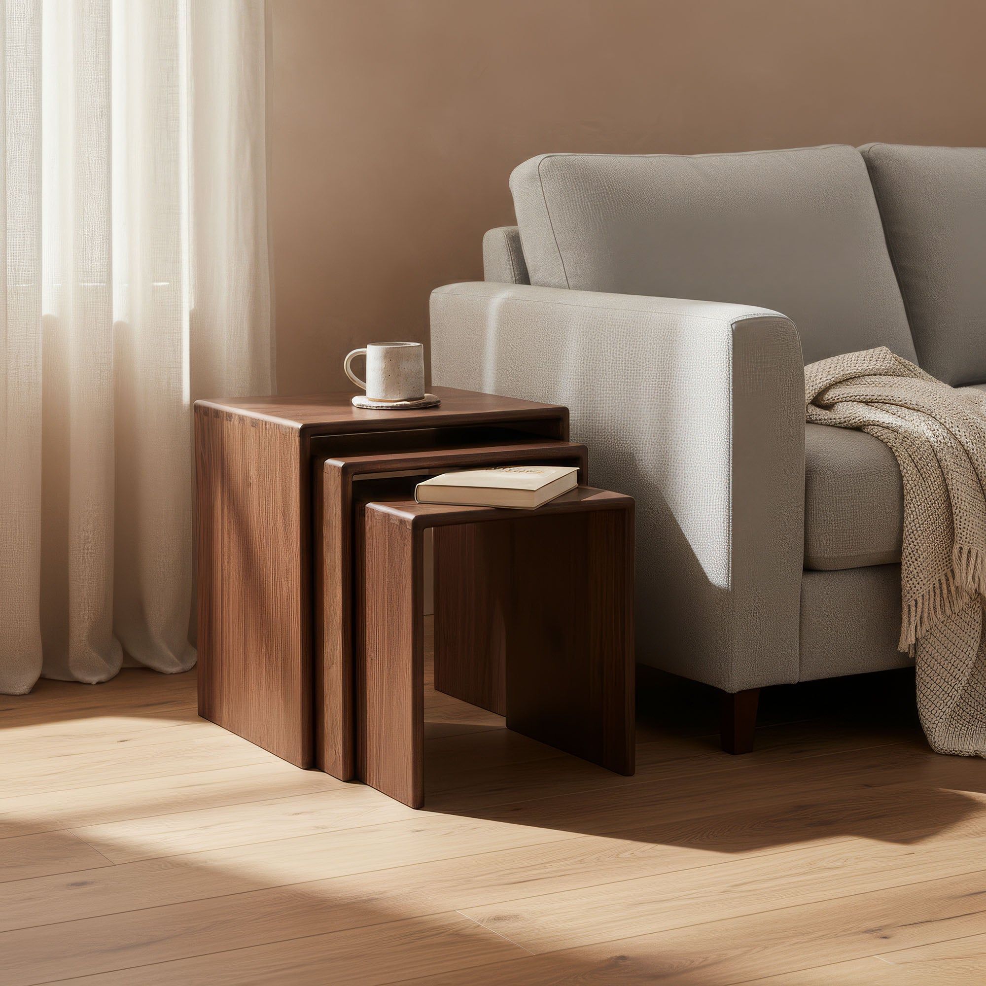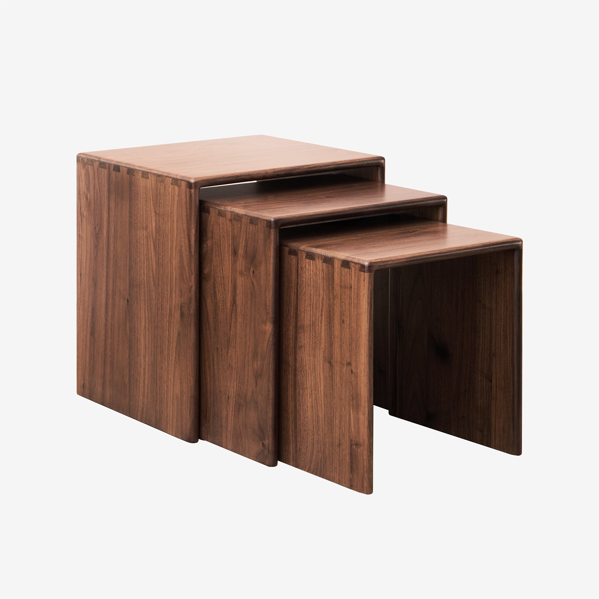 Elevate your space with three tiered tables crafted from solid American Black Walnut. Compact yet versatile, they nest or expand easily and work as coffee tables, side tables, stools, or entryway seating. The Preston Nesting Set includes Large, Medium, and Small pieces in one bundle.