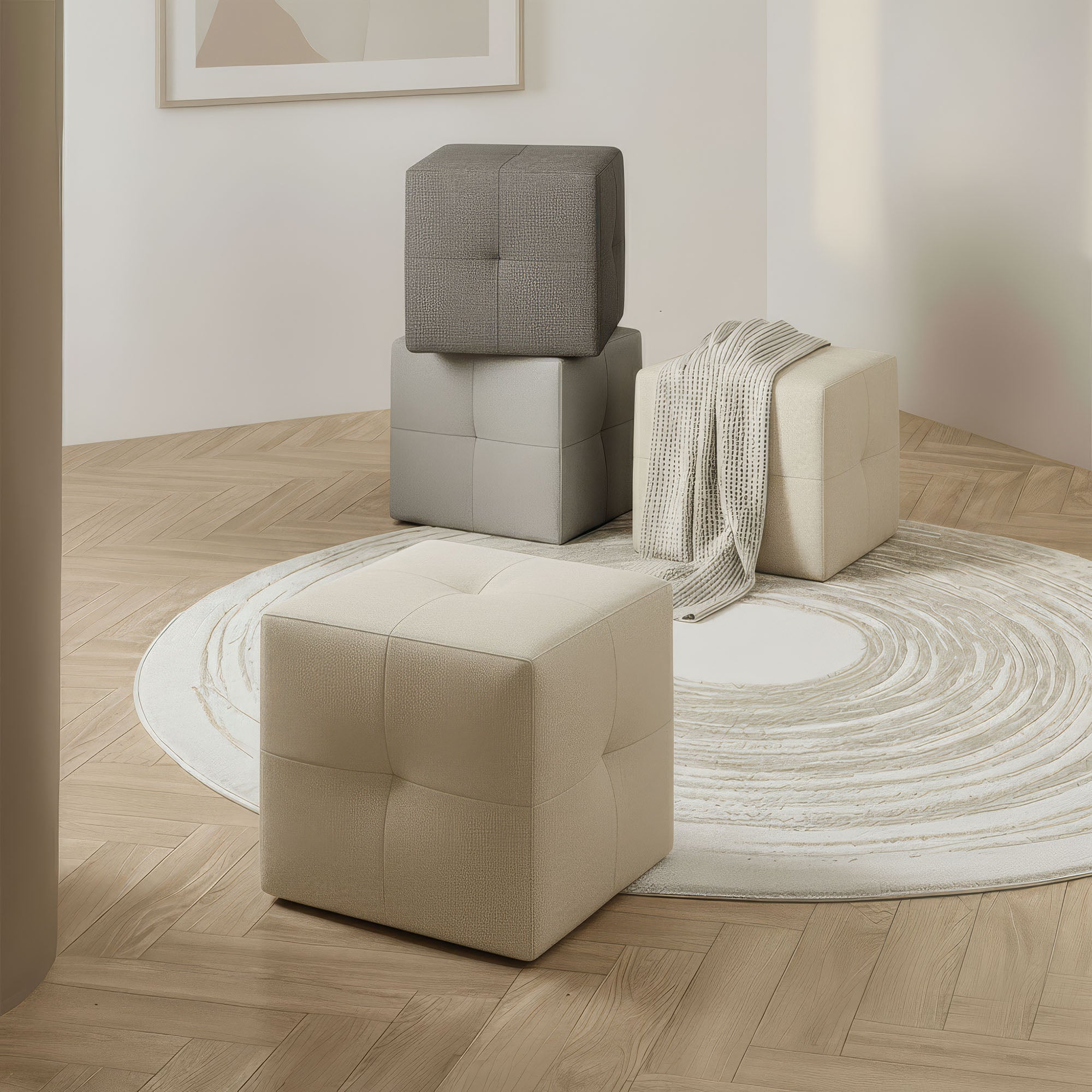The Cubus Fabric Stool is a functional accent piece for modern living with tufted detailing, easy clean fabric and a clean cube silhouette. Built with a solid wood frame and high-density foam, it balances both structure and comfort - perfect as an extra seat, footrest or side table.