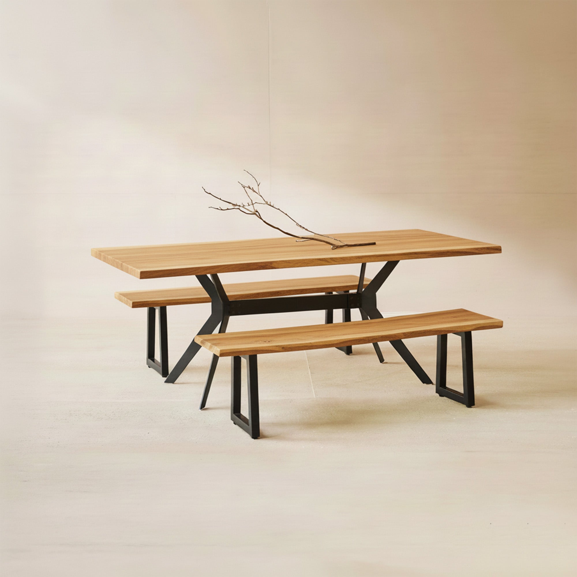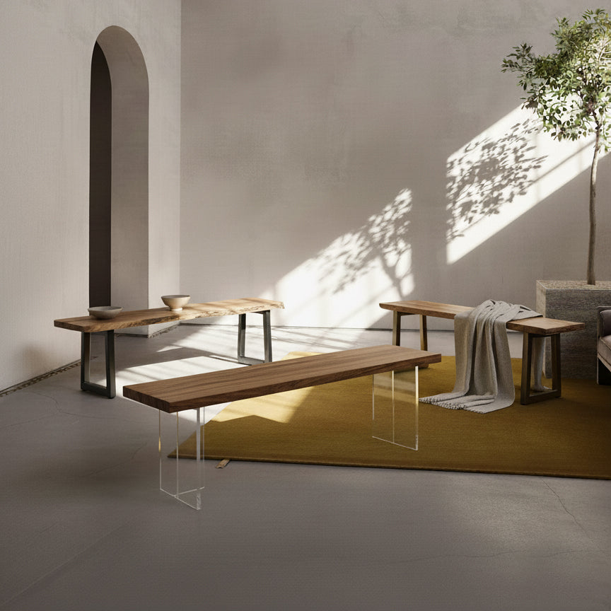 Our Ralph Bench is a solid wood slab designed to be paired with your choice of legs. Its slim profile and natural grain add warmth and texture to dining areas, hallways, or entryways—offering a simple, versatile way to complete your space.