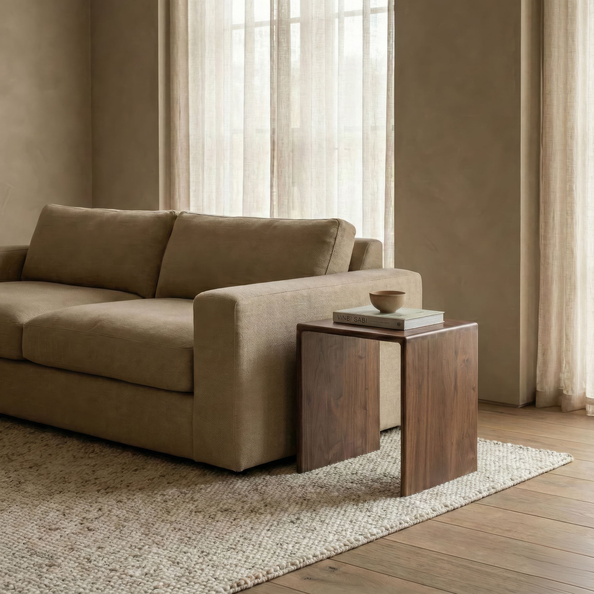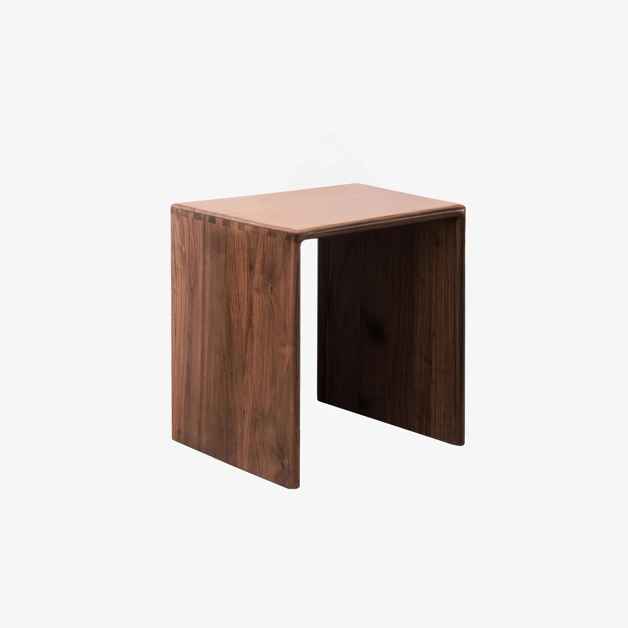 Crafted from solid American Black Walnut, this compact piece highlights versatile utility. Its clean profile functions as a sturdy entryway seat or a side table. Designed for those who value functional minimalism, it completes any corner with a grounded, natural presence.