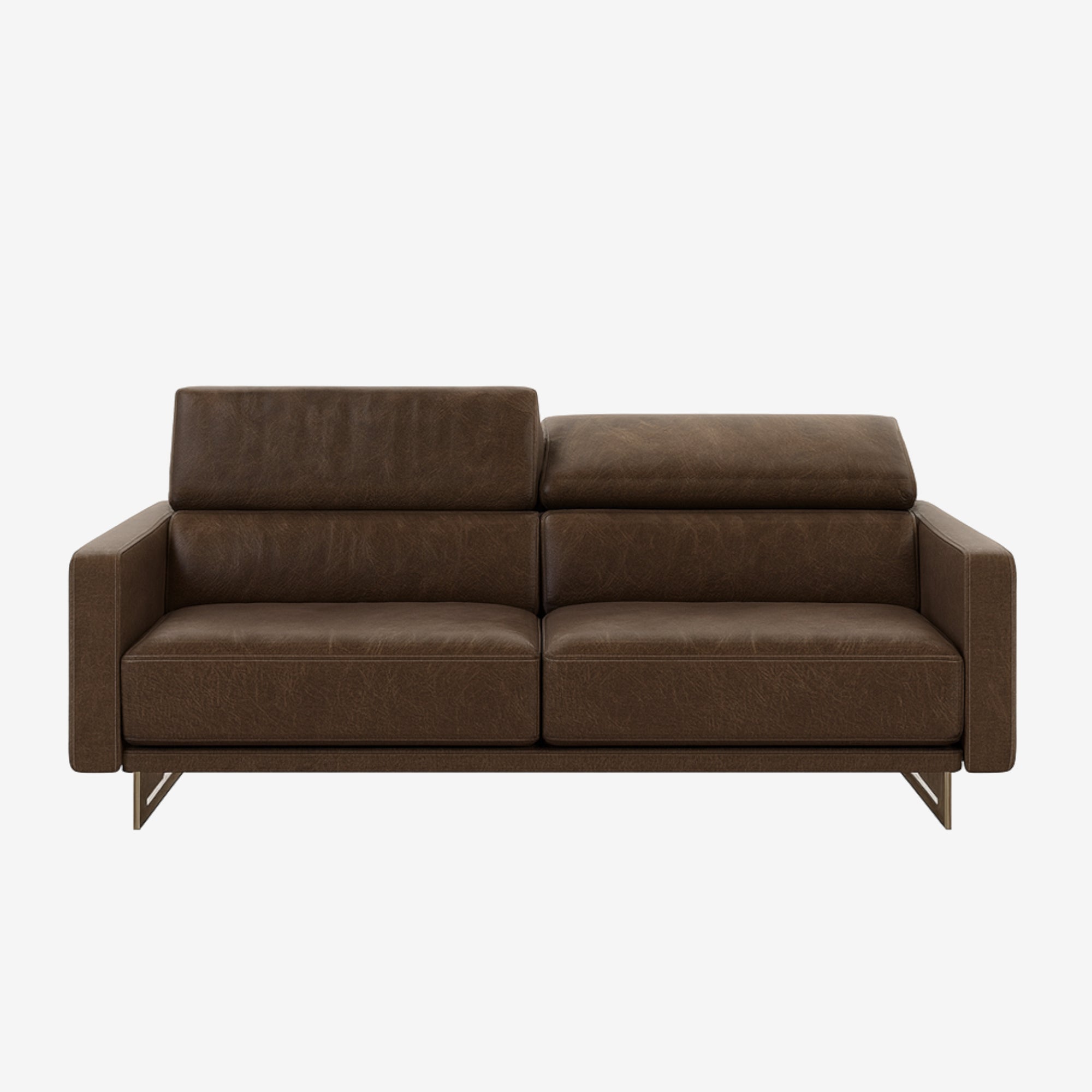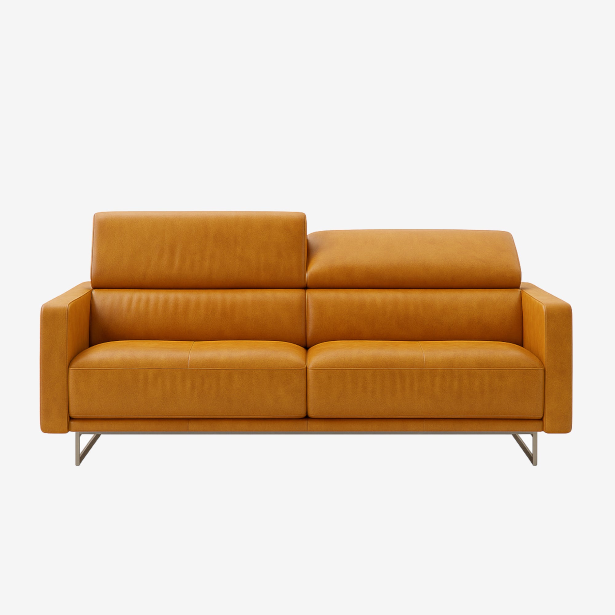 The Maison 3 Seater Leather Sofa brings refined comfort to modern living. Framed in solid wood and elevated by sleek steel legs, it features plush cushioning and an adjustable headrest for personalised support. At 190cm or 202.5cm, the sofa fits 3 comfortably.