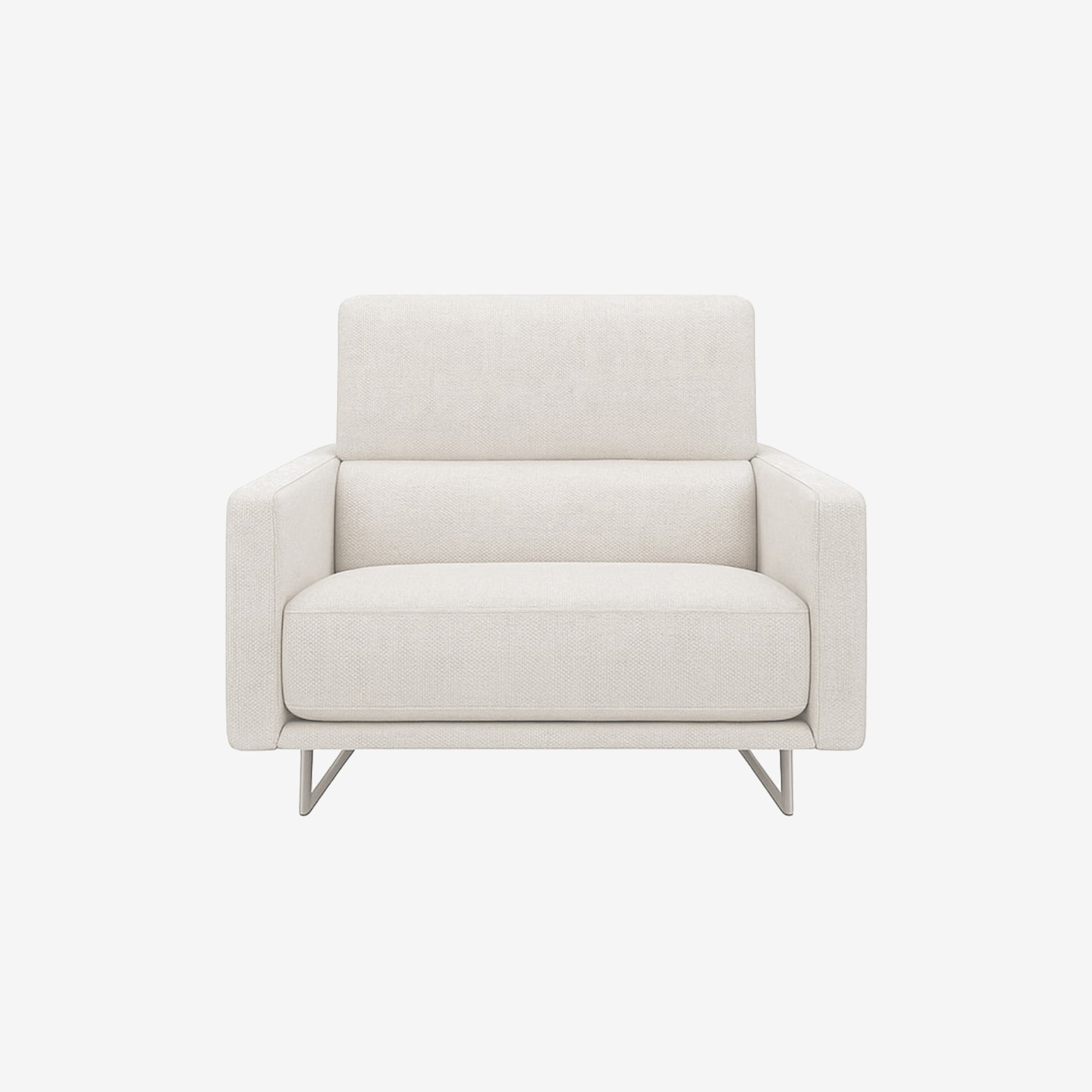 The Maison Fabric Armchair brings refined comfort to modern living. Framed in solid wood and elevated by sleek steel legs, it features plush fabric cushioning and an adjustable headrest for personalised support. At 92.5cm, it seats 1 comfortably and complements other Maison Sofas.