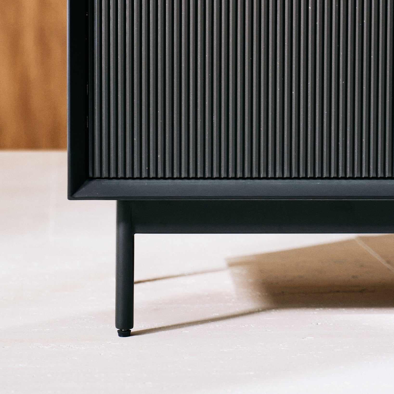 The Graye Shoe Cabinet pairs push-click doors, bevelled edges, and 130cm wood tops in Ashwood, Black Walnut, or Teak. Select from either charcoal or off-white lacquer and black or white legs—balancing industrial edge or minimalist charm with refined, modern storage.
