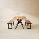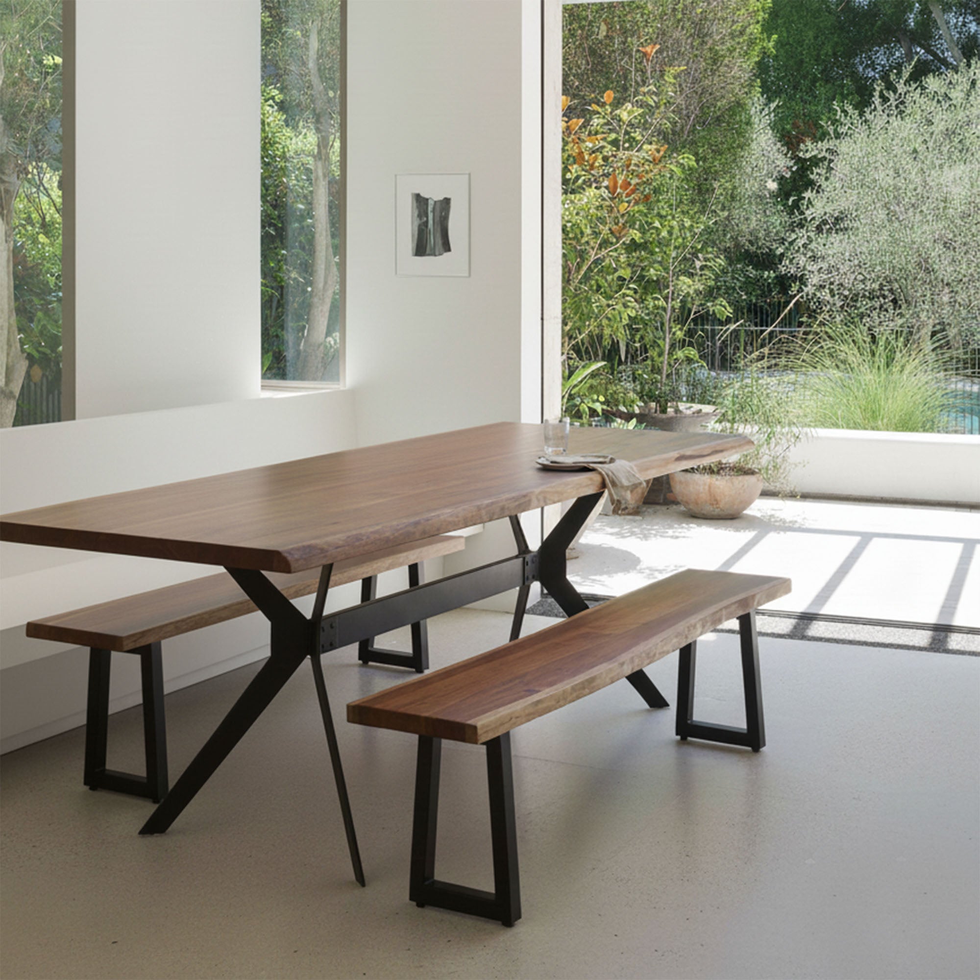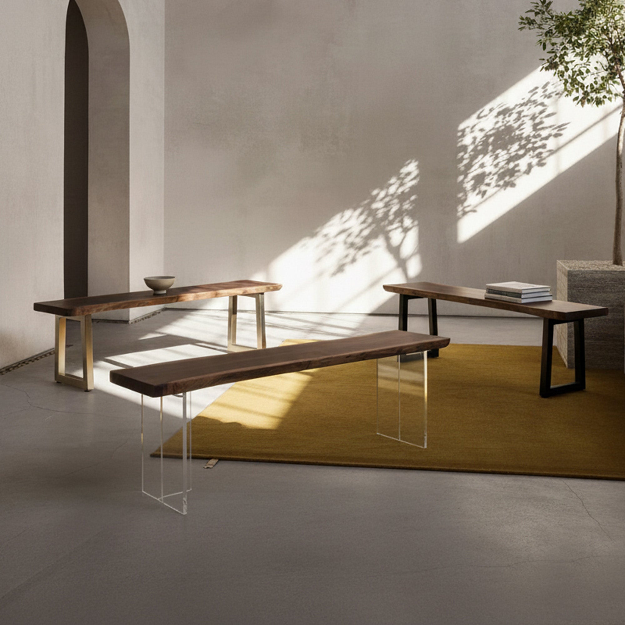 Our Ralph Bench is a solid wood slab designed to be paired with your choice of legs. Its slim profile and natural grain add warmth and texture to dining areas, hallways, or entryways—offering a simple, versatile way to complete your space.