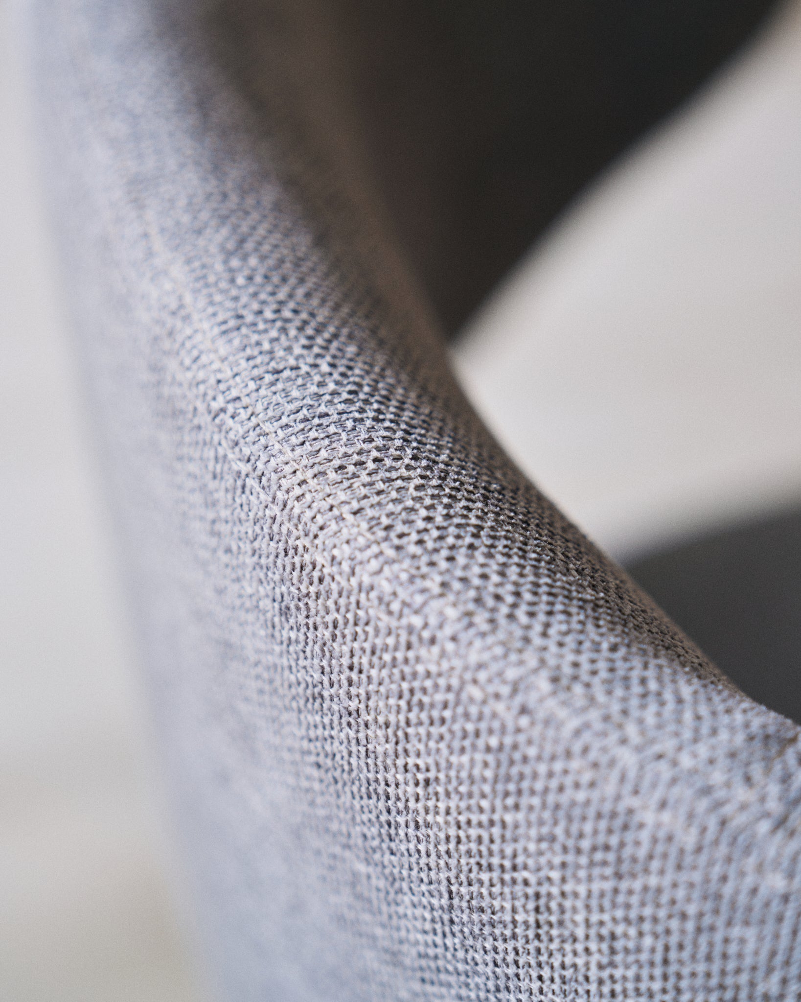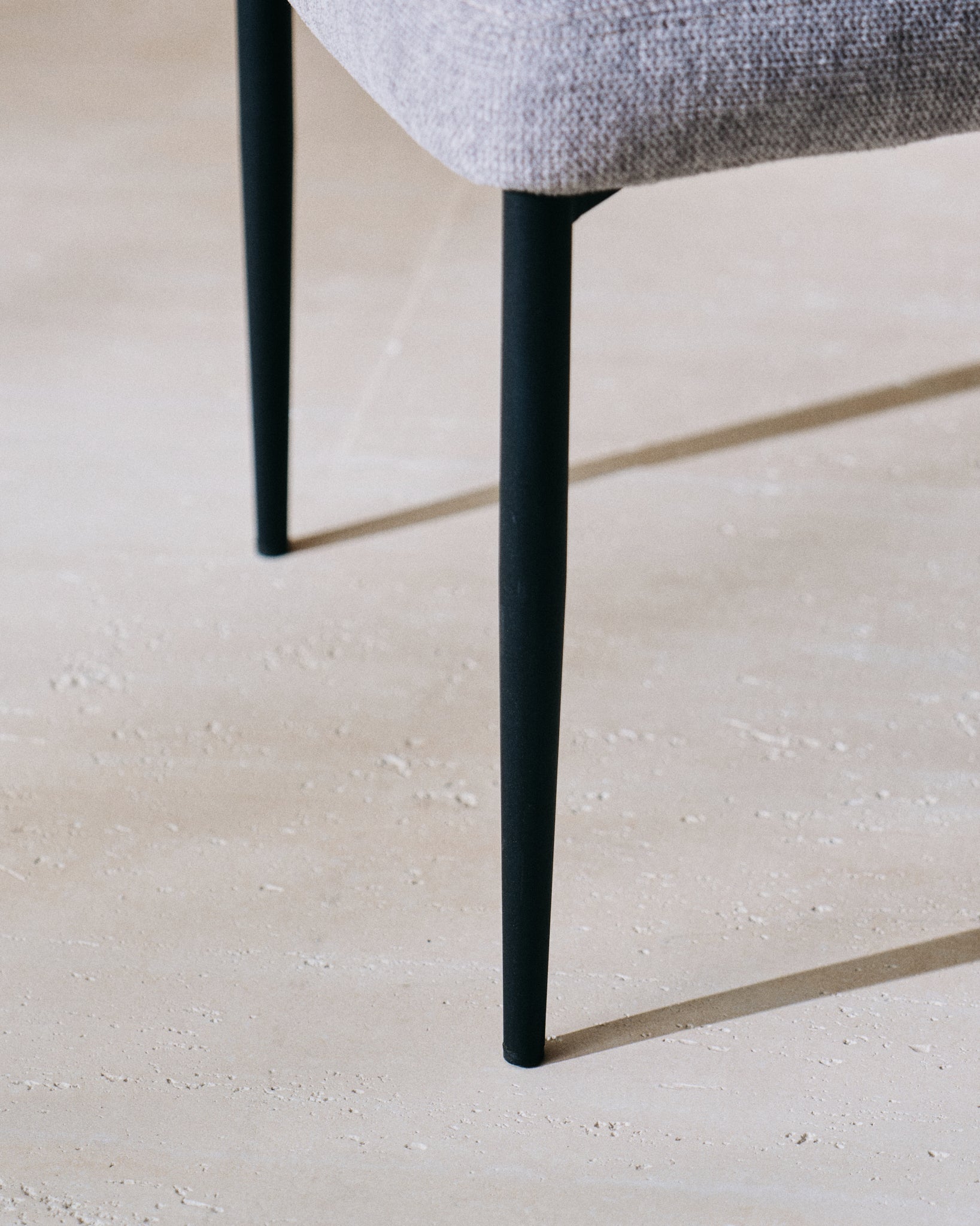 The Luna Dining Chair balances clean lines with soft curves. Wrapped in easy-clean fabric against a matte black frame, it highlights contrast and comfort. A sculpted silhouette that completes dining spaces and complements quiet, modern interiors.