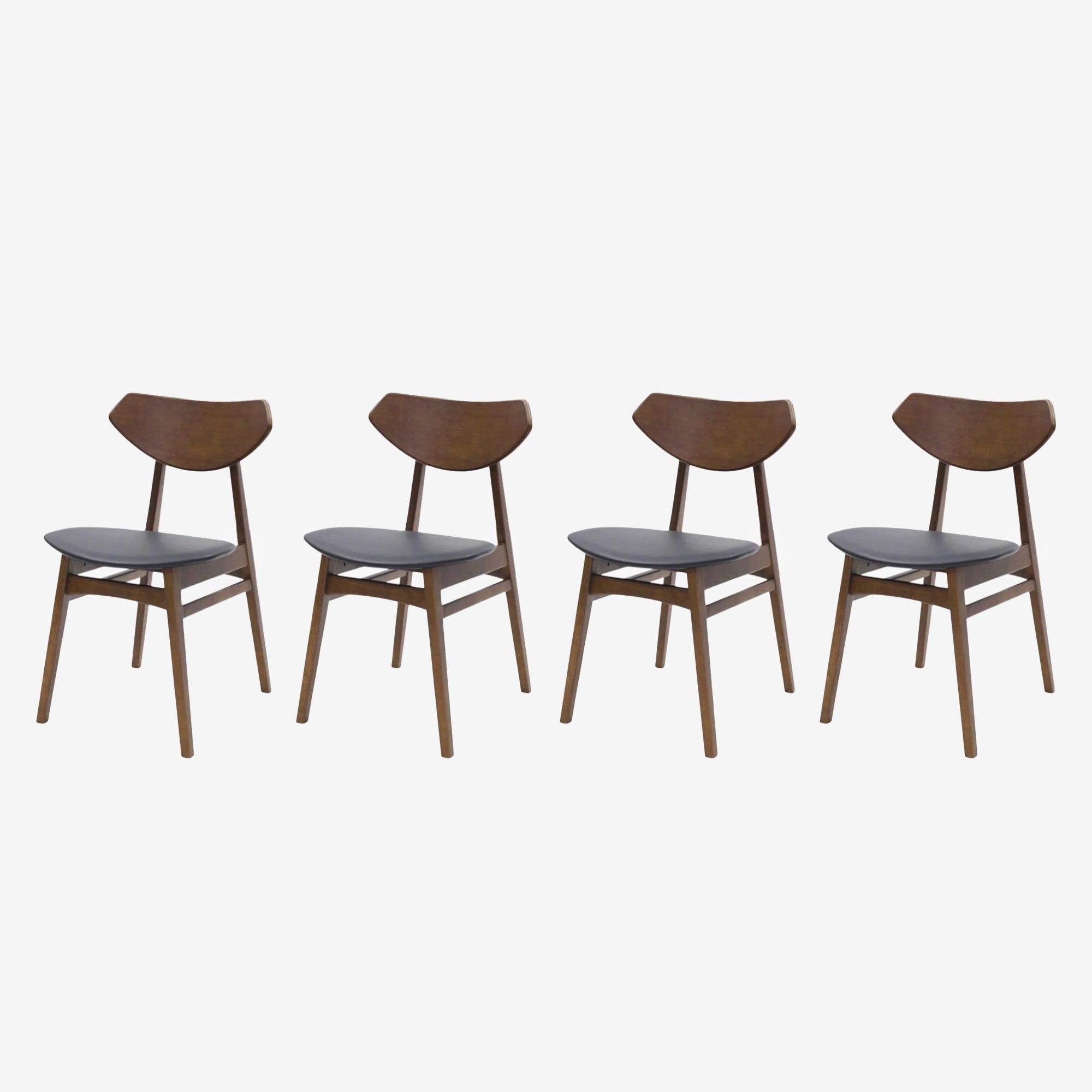A distinct feature of the Clifton chair is its butterfly-shaped backrest, which provides ergonomic support like no other. Soft black leather seats add a layer of comfort and contrast, while rounded edges and angled legs lend a calm, inviting presence. As a set of 4, it's perfect for small families.