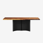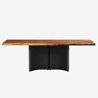 The Cove Dining Table tops our black three-leaf clover Tivo Legs with an artisan-crafted American Black Walnut hexo top. Each slab showcases unique grain. Thoughtfully curated, it blends classic wood warmth with innovative design into a refined, contemporary centerpiece.