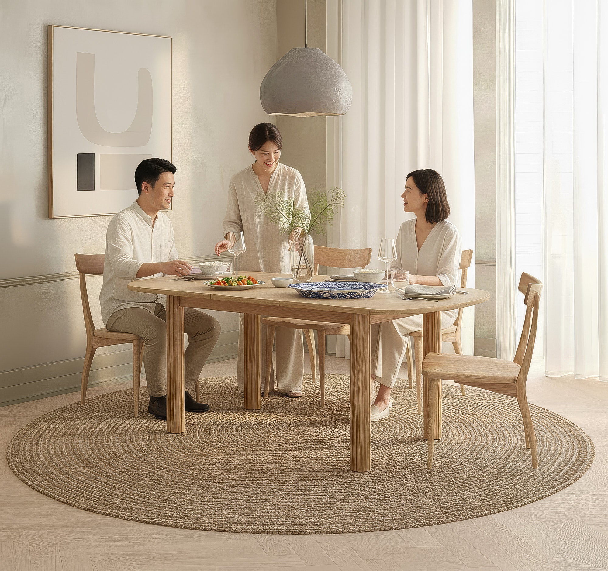 The Havana Extendable Dining Table adapts with ease - from quiet dinners for 6 to lively gatherings of 8. Its light oak tones lend a sense of calm clarity and natural warmth, perfectly complementing modern, minimalist interiors with quiet charm.