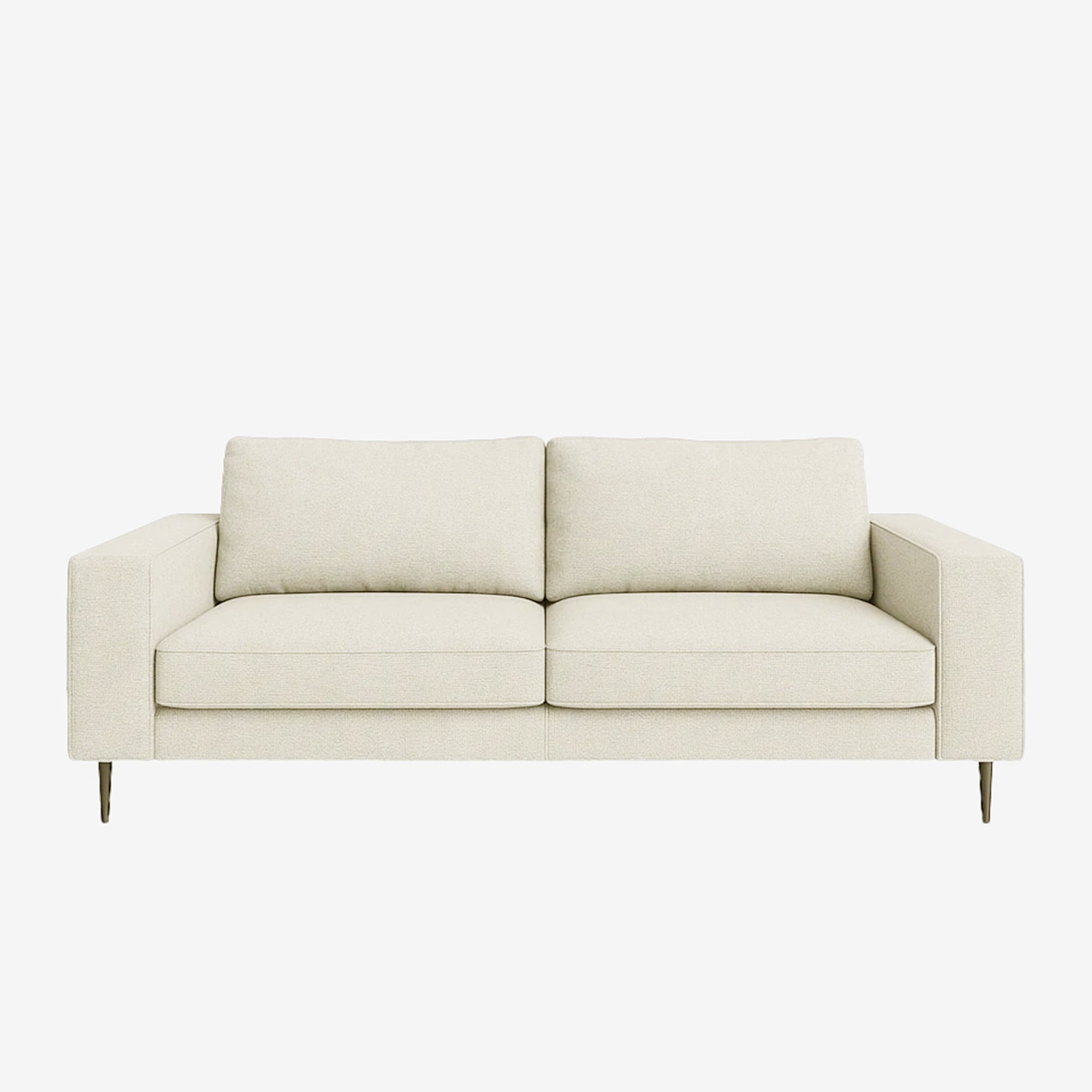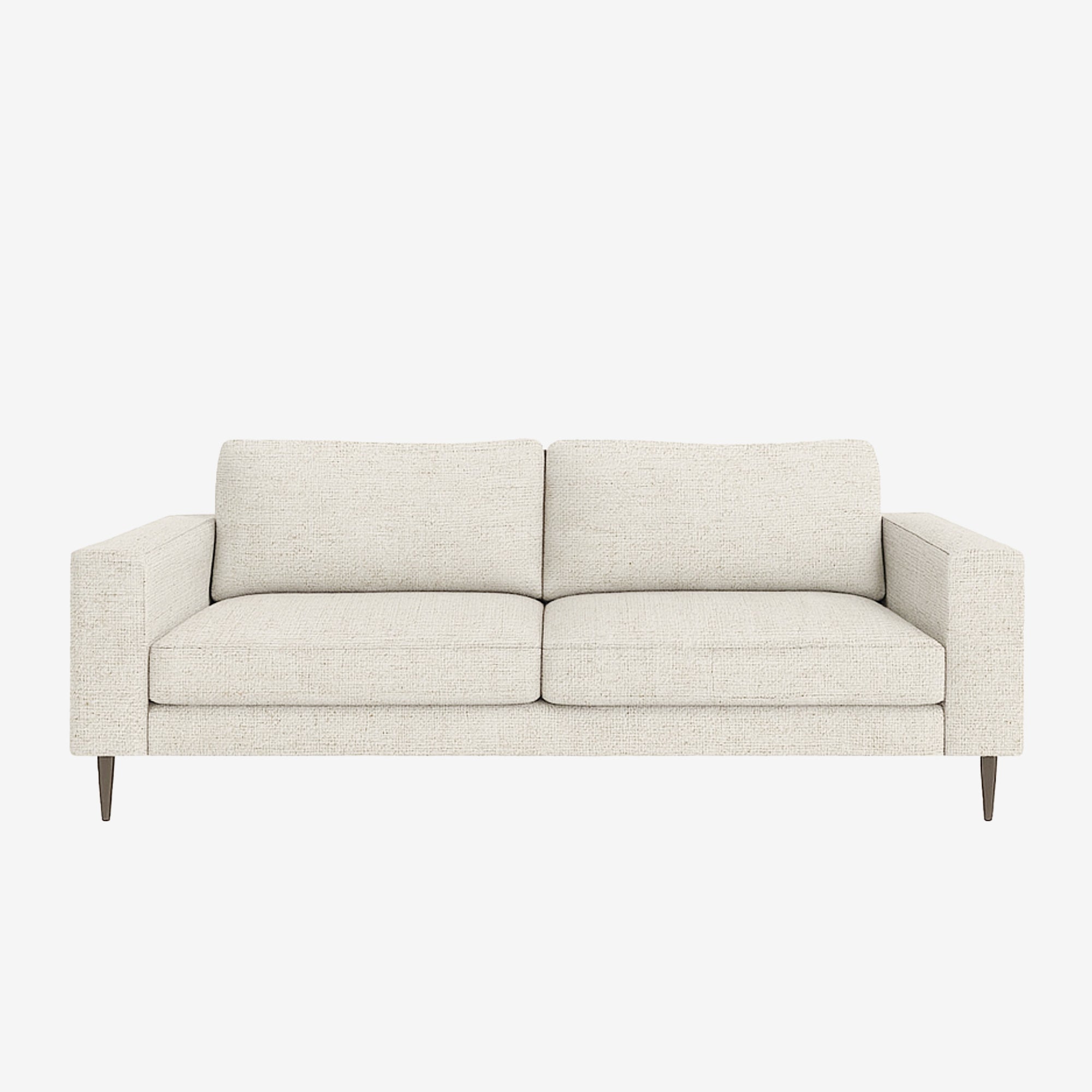The Reilly 3 Seater Fabric Sofa combines sleek design with luxurious comfort. Upholstered in cozy, warm fabric tones, it complements modern interiors effortlessly. Distinctive wide armrests double as side tables or lounging spots. At 215cm, it comfortably sits 3.
