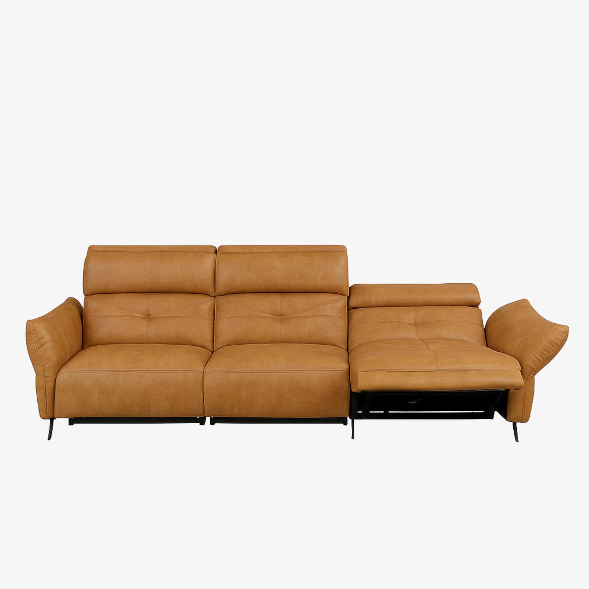 The Vermont 4 Seater Leather Recliner Sofa elevates the classic recliner with modern touches. Its sleek reclining system, adjustable armrests and backrest offer indulgent comfort and flexible adaption. At 269cm, it accomodates 4.