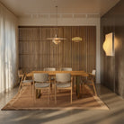 Perfect for compact living spaces, this versatile Dining Table Set for four includes a 1.6m Indonesian Teak dining table and four Atlas dining chairs in natural finish. Light, neutral colour tones complement both minimalist and modern interiors.
