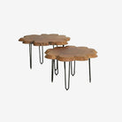 Root coffee table slabs are sliced horizontally from the base of the tree, featuring naturally twisted and gnarled shapes. Dense, durable, and full of character, each slab forms a sturdy coffee table with a bold, rustic look that lends a touch of individuality to any space.