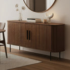 Ipanema Sideboard is crafted with vertical fluted panelling that accentuates the natural dark tones of walnut veneer. The intricate texture highlights the wood's distinctive grains, bringing depth and warmth to modern interiors.