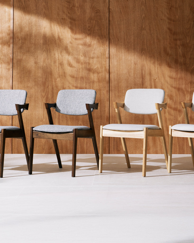 Pair the Atlas Dining Chair with American Ashwood, or the Matilda Dining Chair with American Black Walnut for a calming Wabi-Sabi touch.