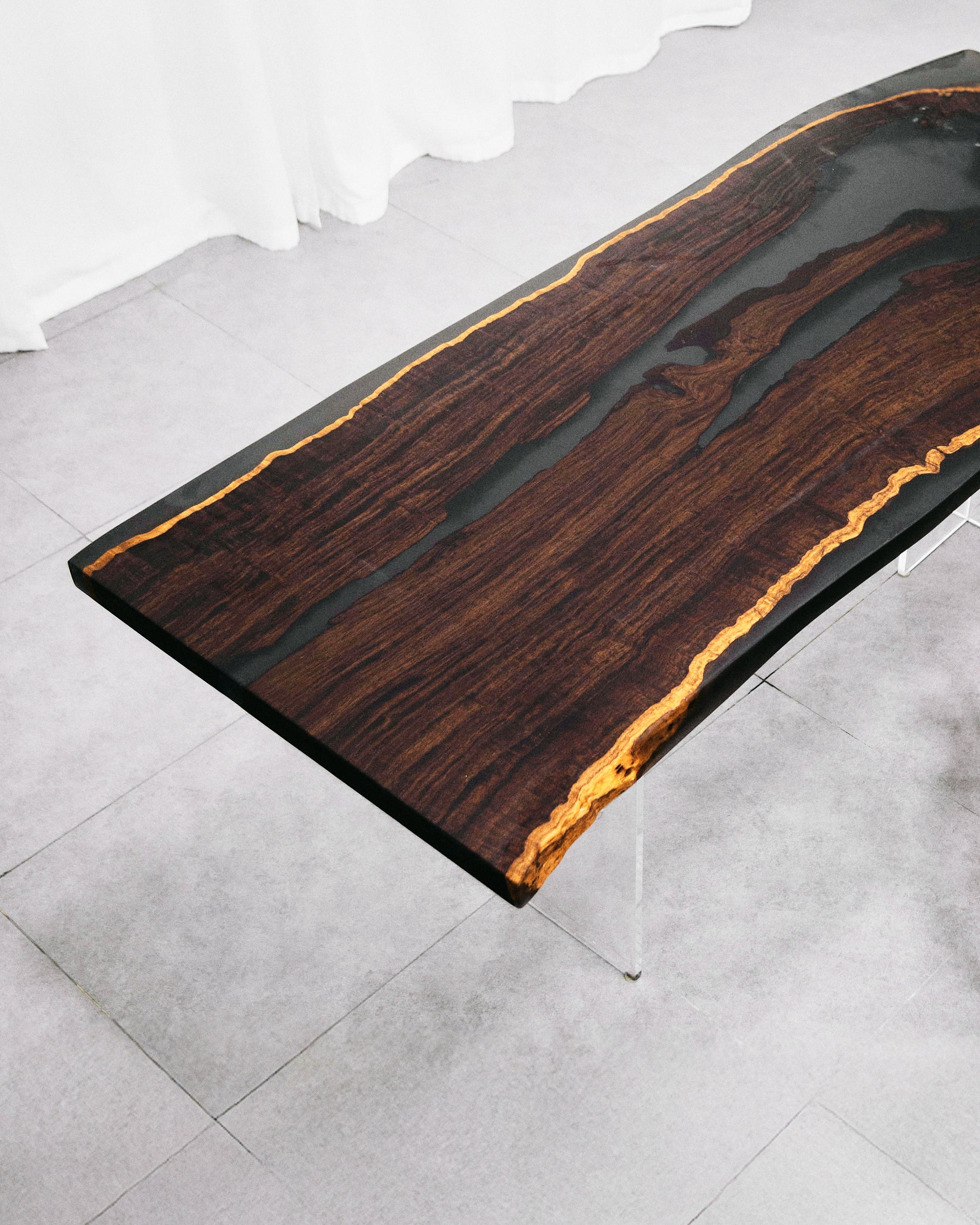 Resin wood slabs preserve the wood’s natural imperfections with a bespoke touch. Cracks in woods like Leadwood are filled with clear epoxy resin, transforming each piece into a stunning statement piece that elevates nature’s raw beauty through refined craftsmanship.