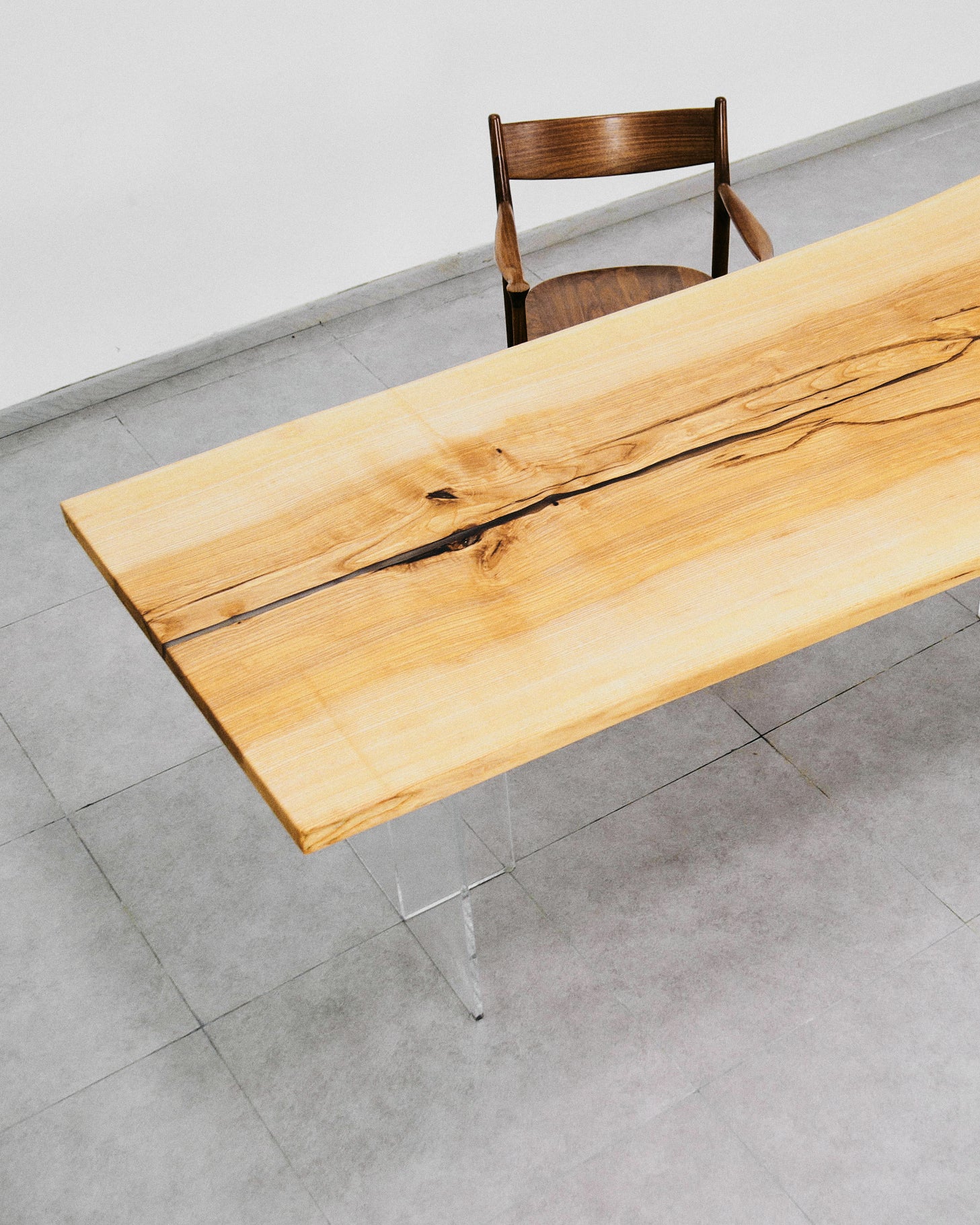 Resin wood slabs preserve the wood’s natural imperfections with a bespoke touch. Cracks in woods like American Ashwood are filled with clear epoxy resin, transforming each piece into a stunning statement piece that elevates nature’s raw beauty through refined craftsmanship.