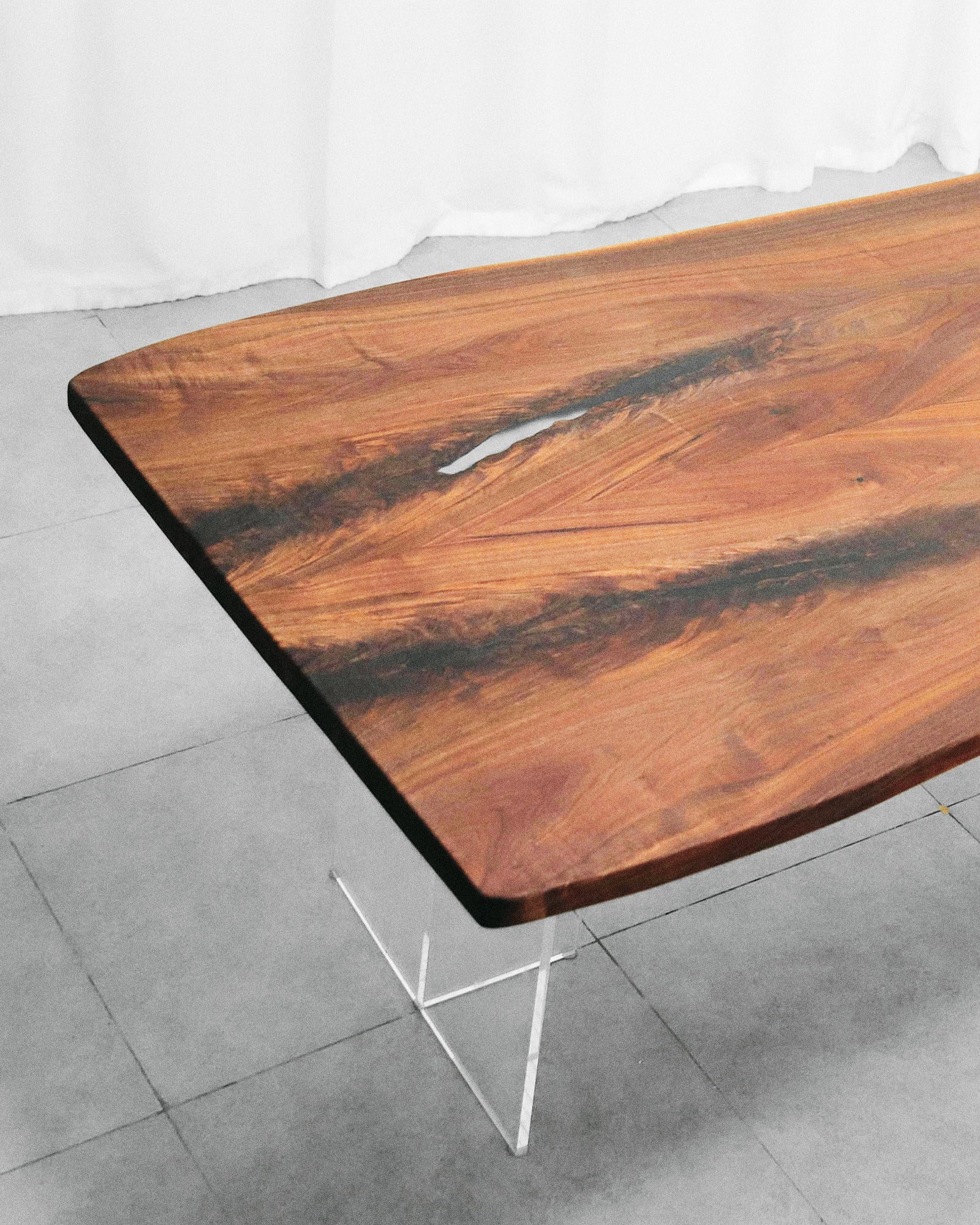 Resin wood slabs preserve the wood’s natural imperfections with a bespoke touch. Cracks in woods like American Black Walnut are filled with clear epoxy resin, transforming each piece into a stunning statement piece that elevates nature’s raw beauty through refined craftsmanship.