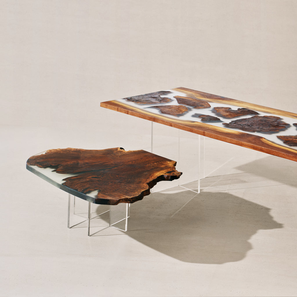 Create a statement piece with walnut burl slabs. Sourced from the unique growths of walnut trees, these slabs feature irregular, one-of-a-kind shapes ideal for coffee or side tables.