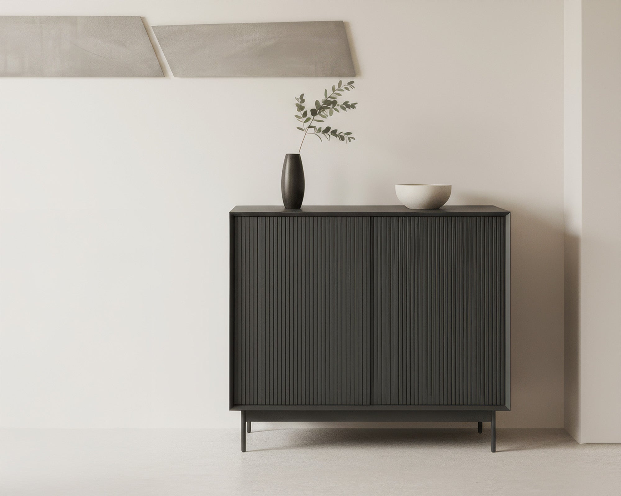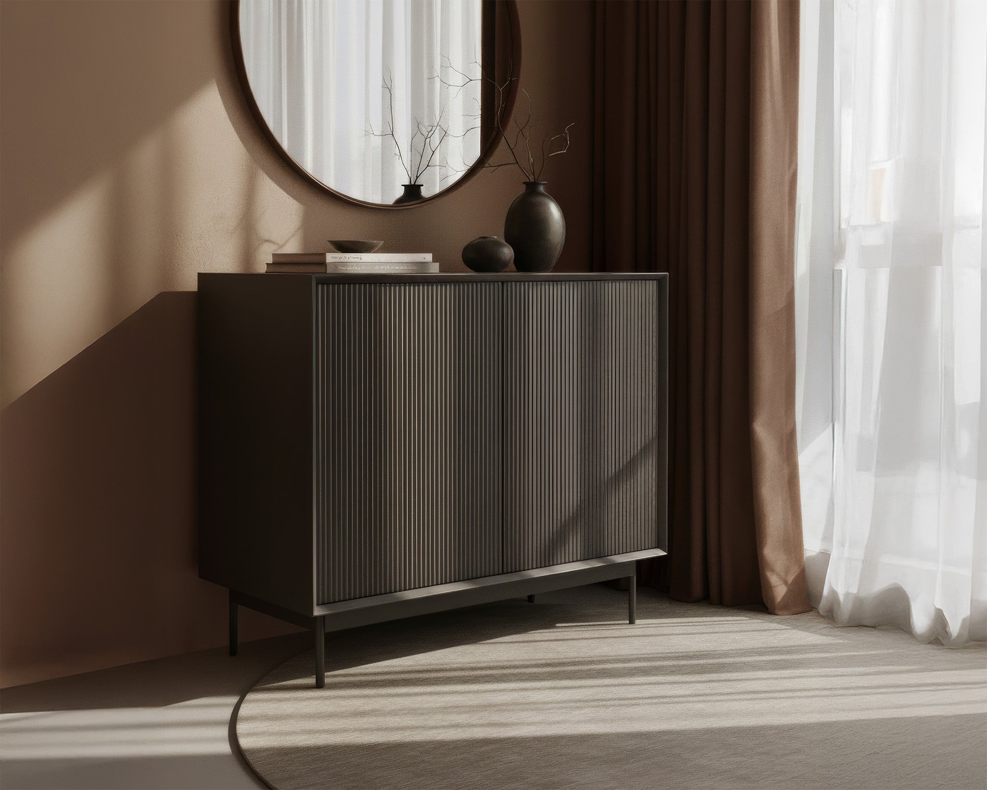 The Graye Collection’s distinctive charcoal grey lacquer finish lends it a refined, modern edge. Its smooth, simple finish allows it to blend effortlessly into versatile interiors, adding a touch of understated charm to your space.