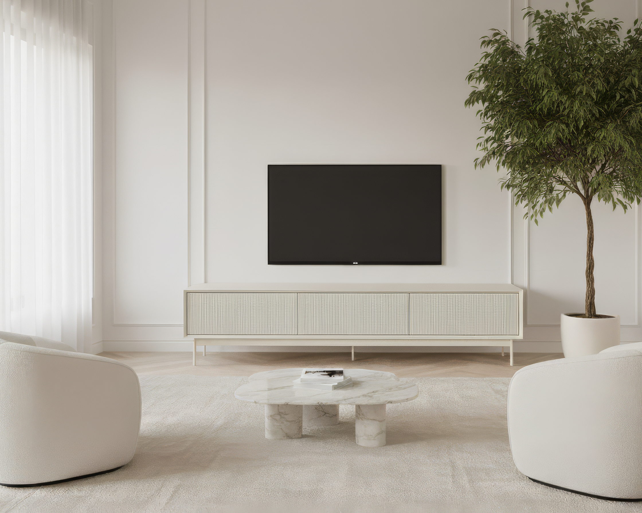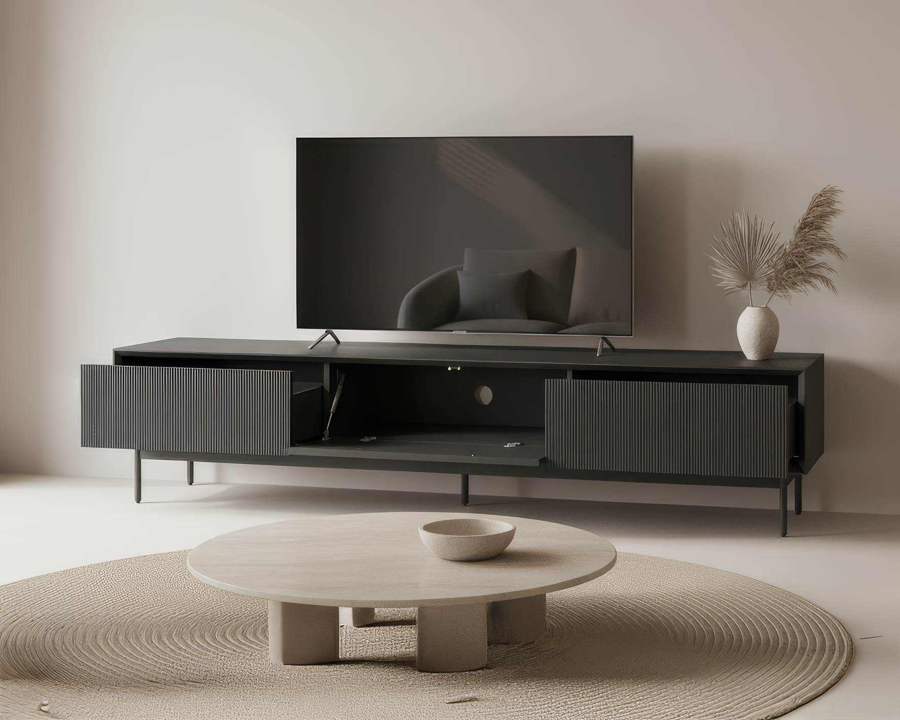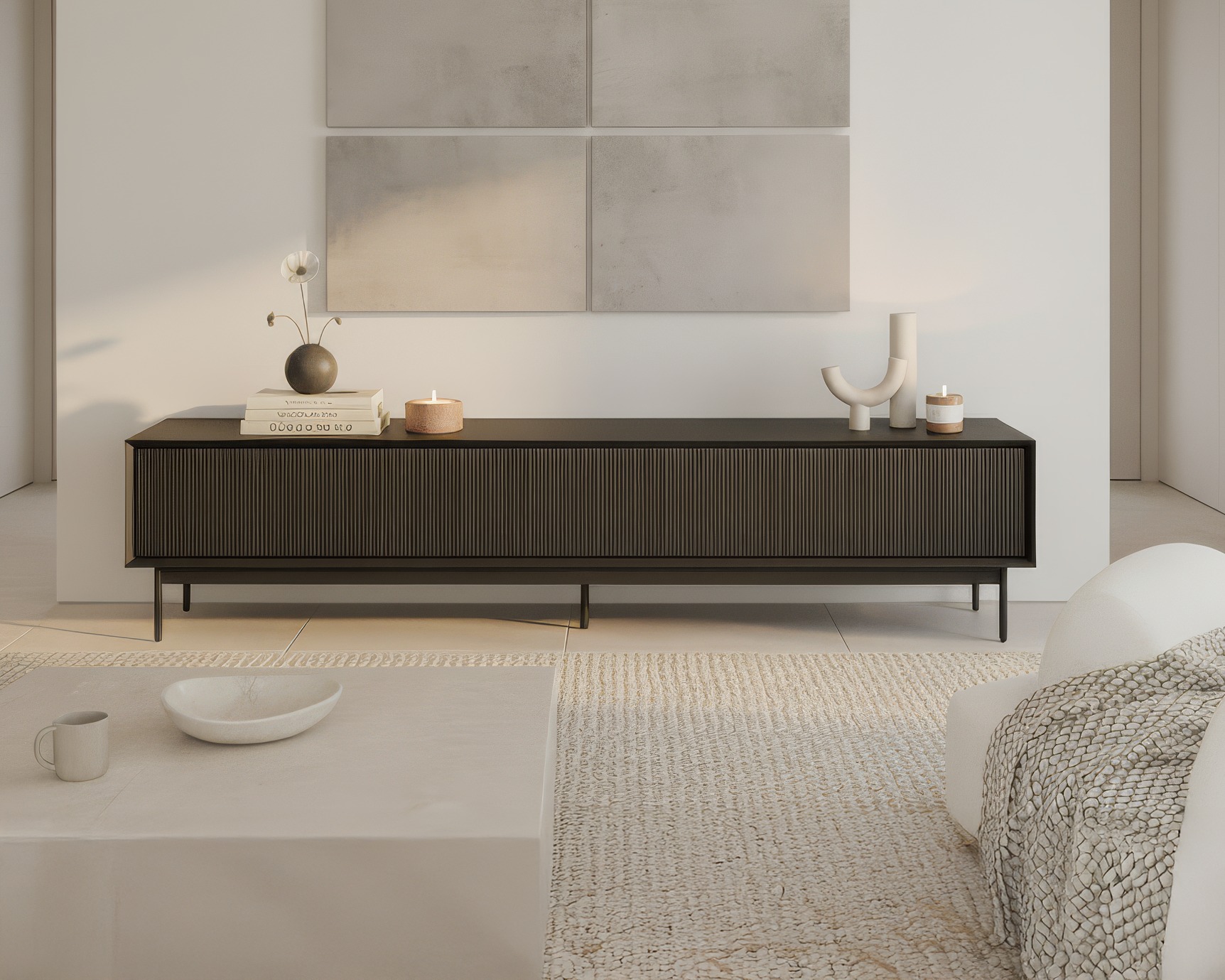 The Graye Collection’s sleek modern design presents the option to personalise each piece with a wood slab of your choice. This customisable detail invites you to top the piece with the warmth and depth of natural wood, elevating both its form and the space that surrounds it.
