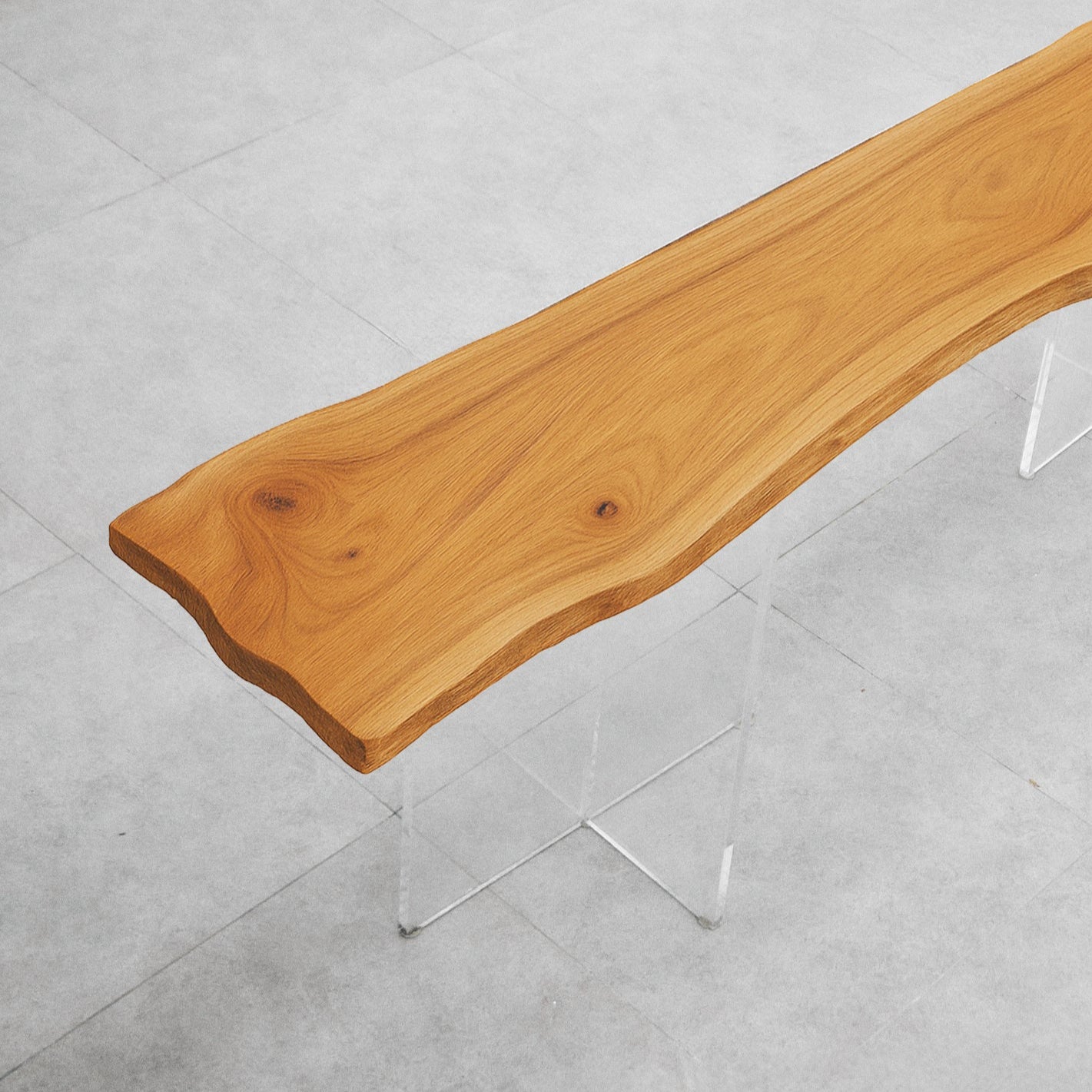 The Tectona grandis tree grows 30 to 40m tall and 1.5m wide. Slabs from 1.4 to 3m suit dining or conference tables. Pair with Sawyer benches at 1.3, 1.5, and 1.7m, or Ralph benches from 1.2 to 1.8m. Indonesian teak also comes in root cuts for side or coffee tables.