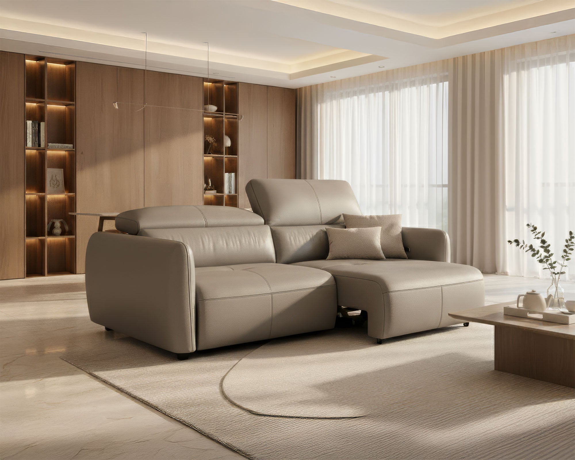 The Nido Sofa Collection reveals comfort shaped by gentle curves. Its compact form conceals a recliner that extends into a generous space — an effortless shift from lounging to slumber, inviting you to unwind at your own rhythm.