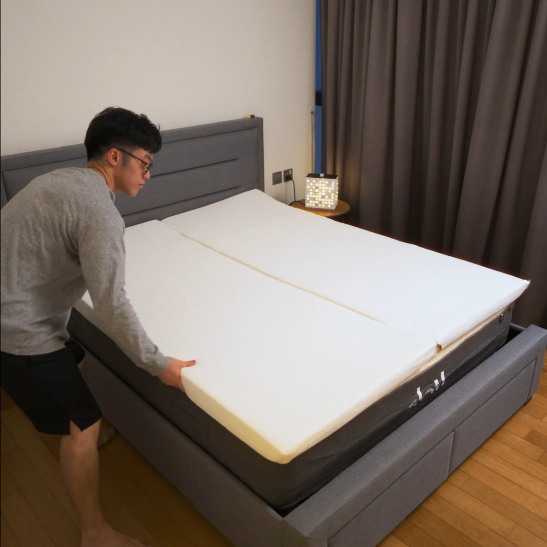 - Cooling Tencel topper — moisture-wicking, breathable, dry rest