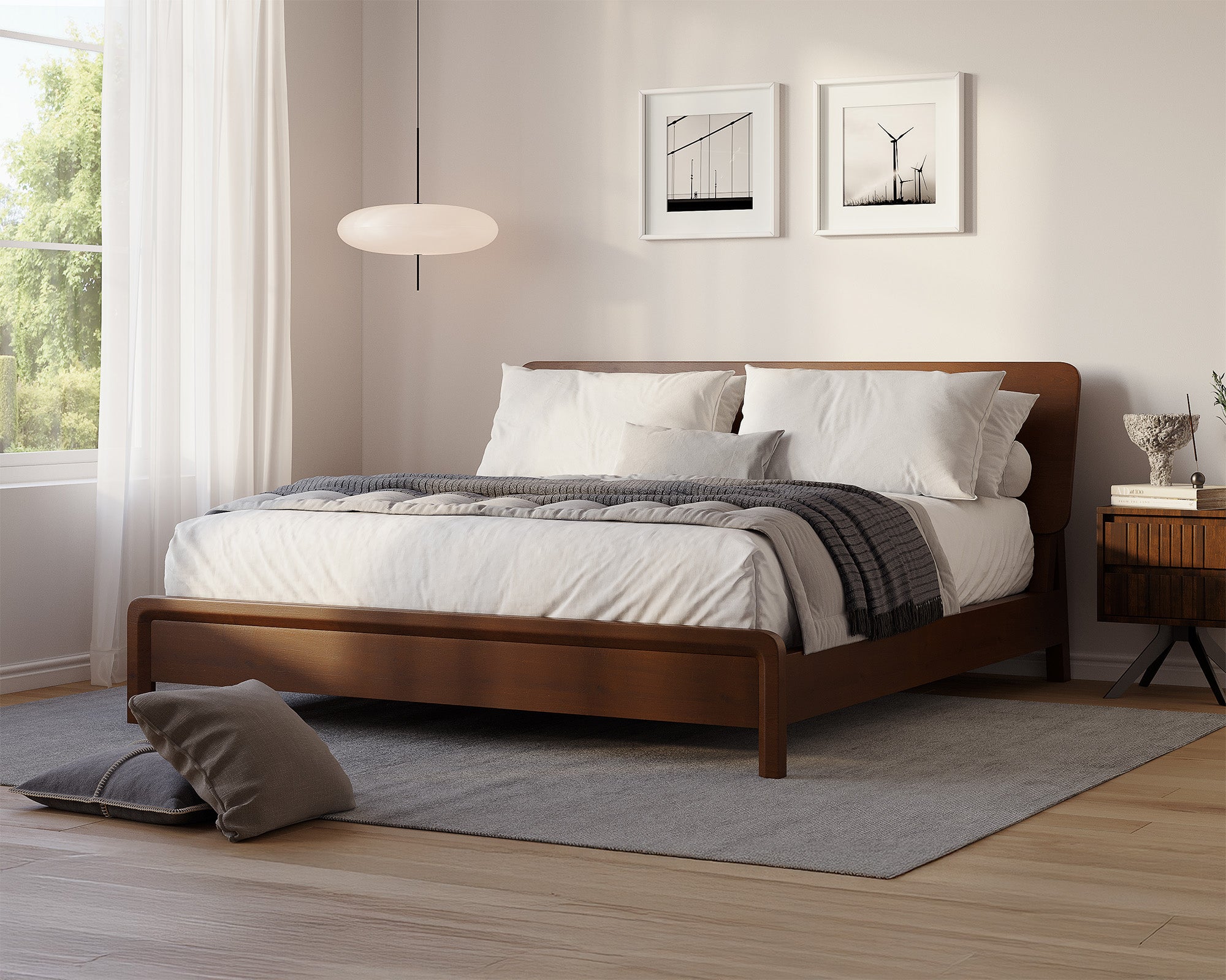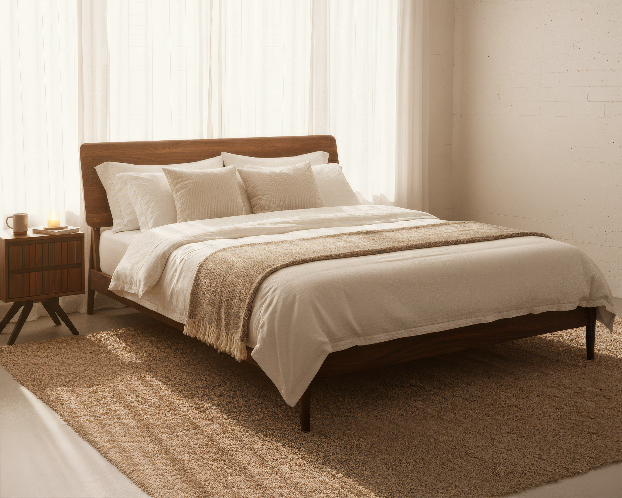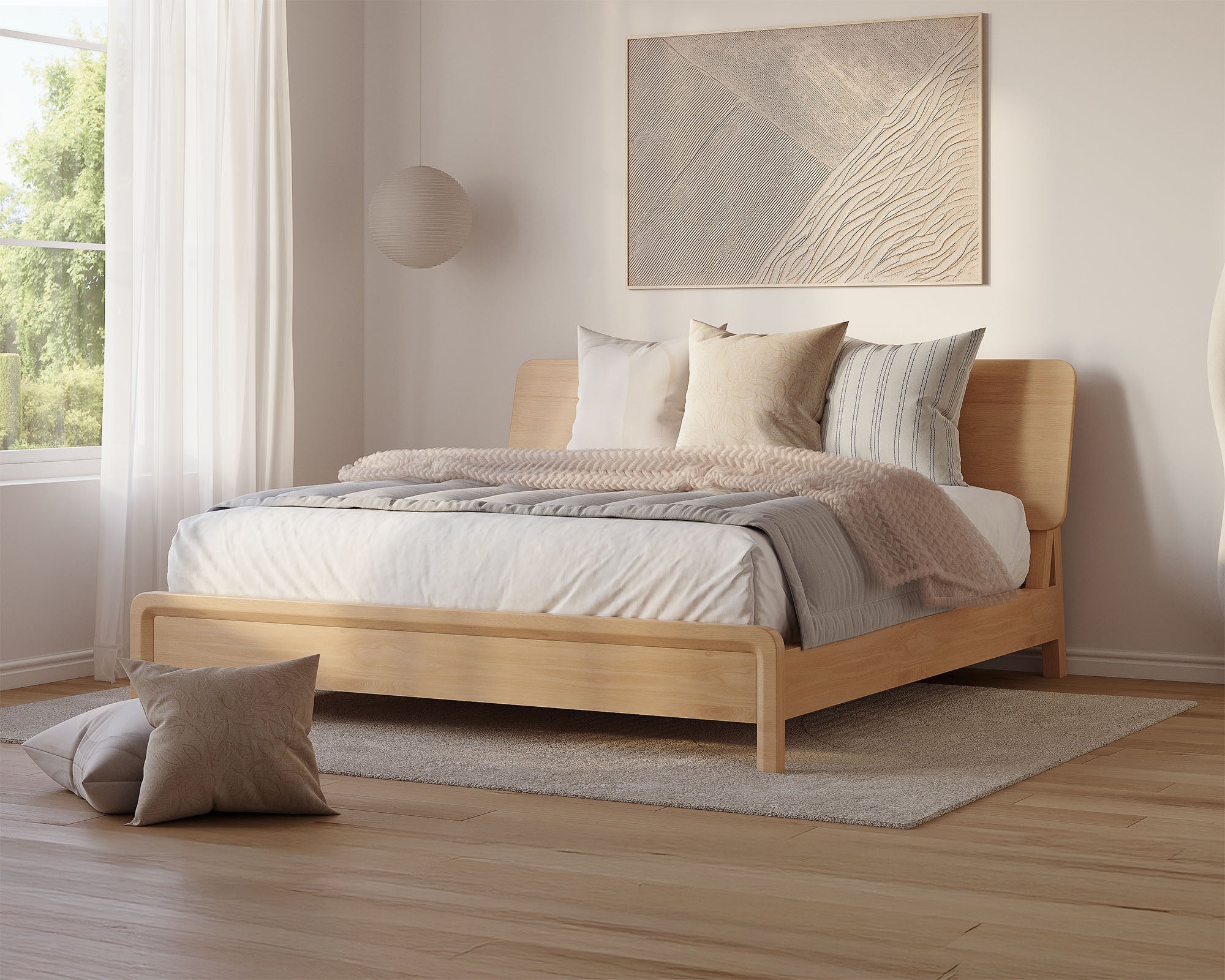 Gently curved edges soften the solid Ashwood frame of the Sonno bed, bringing tranquility to minimalist interiors. These rounded contours prevent bumps and injuries, keeping little ones and pets safe.