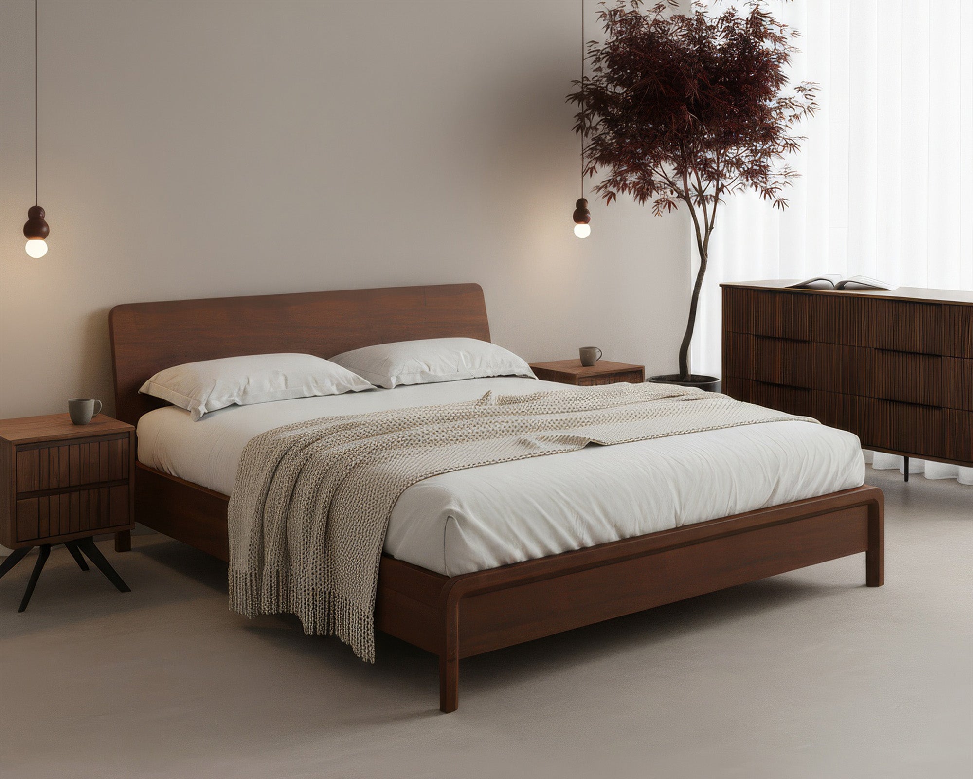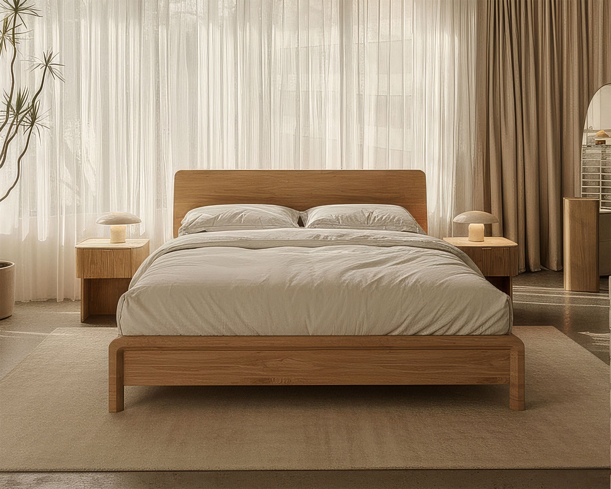Crafted from solid Ashwood, the Sonno bed frame boasts both sturdy construction and wood warmth. Inspired by the treetop cabins, beautiful wood grains add a touch of nature to your room.