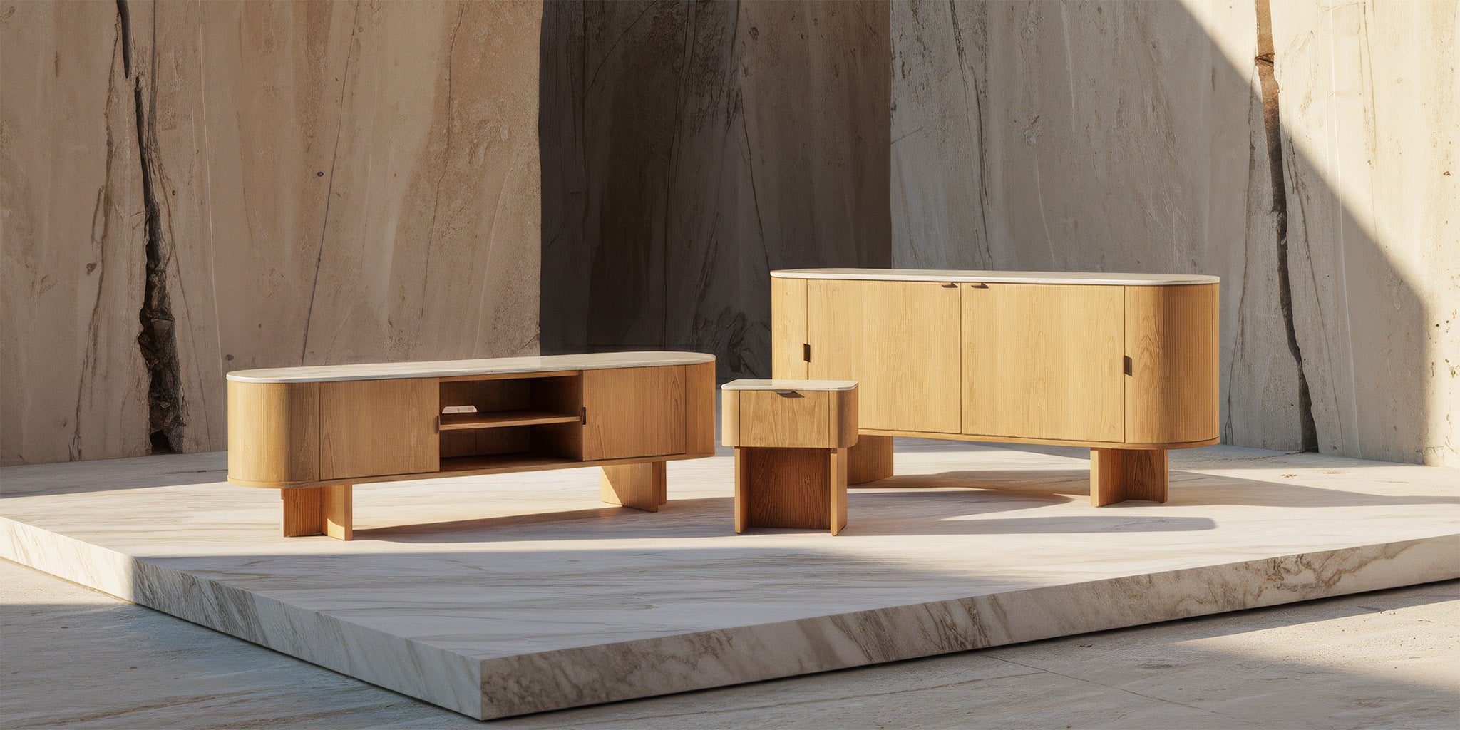 Carefully crafted round edges lend the Tivoli Collection its gentle, minimalist charisma. Tivoli’s calming neutral palette and design harmonise effortlessly with modern interiors, adding a serene touch to any space.