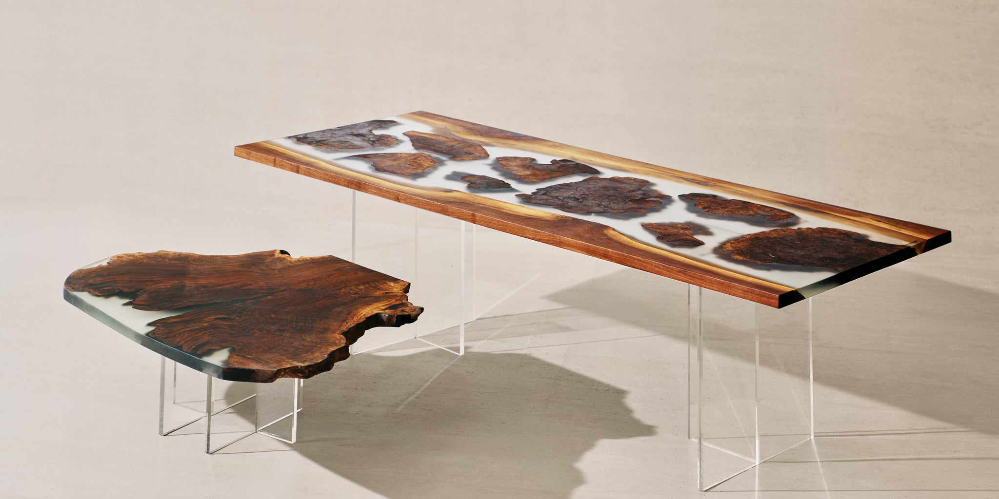 Through fine craftsmanship, the natural curves and cracks of American Walnut Burl are carefully filled with clear epoxy resin, creating a smooth, bespoke finish. Each resin wood slab is transformed into a stunning, functional work of art.
