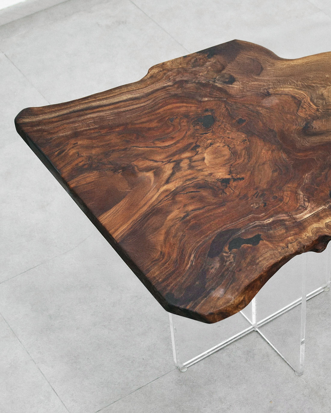 Walnut burls offer the same functional strengths as American Black Walnut — notable durability, stability, and density — while showcasing a rare and intricate figure defined by richly organic patterns and grains. This blend of performance and beauty makes burlwood highly prized for high-end furniture and refined tabletops, transforming any piece into an artistic focal point. Because burls naturally form in smaller sizes, typically up to 1m wide and 2m long, they are especially well-suited for a small burl dining table, burl wood coffee table, and burled wood side table.