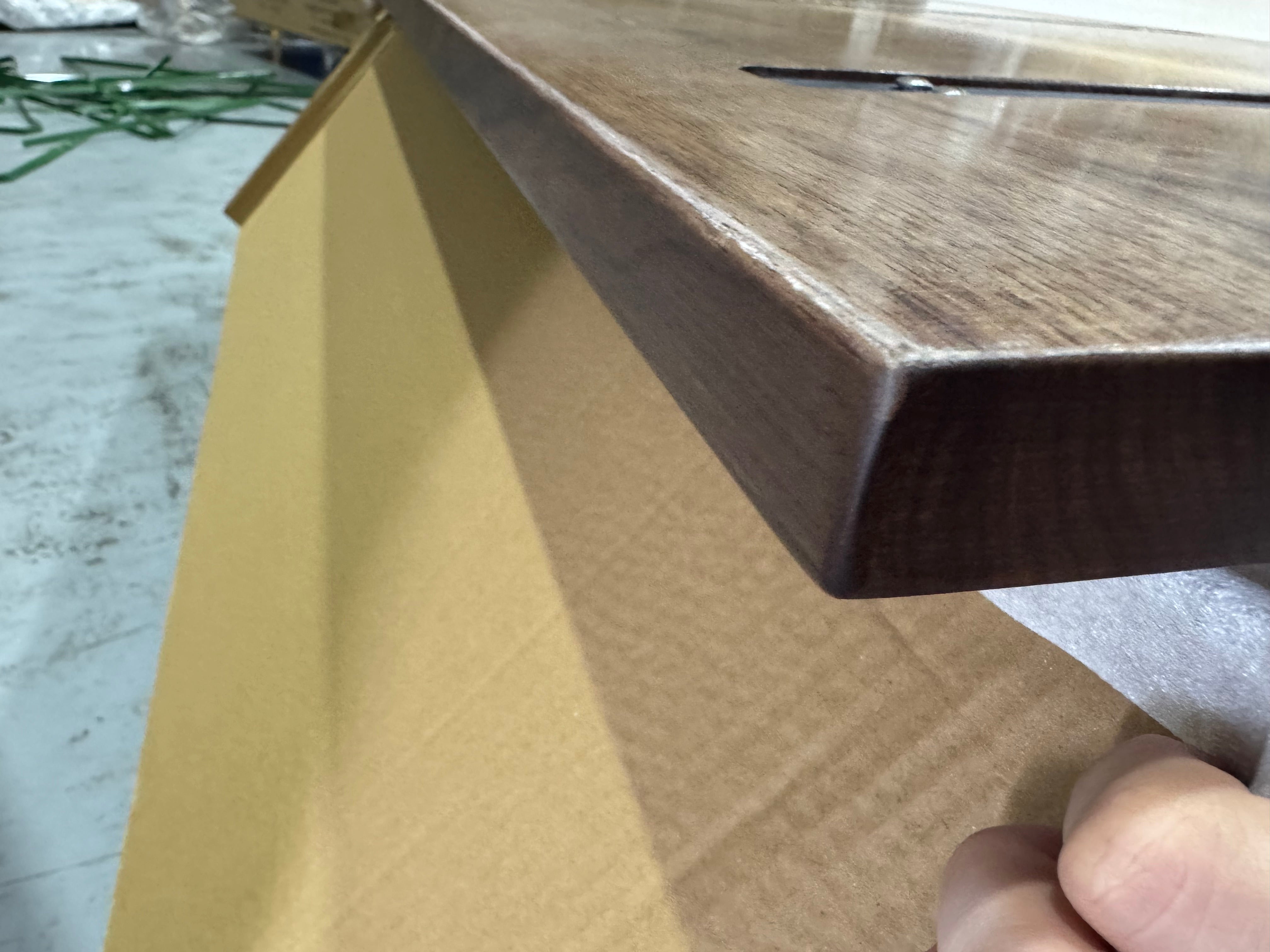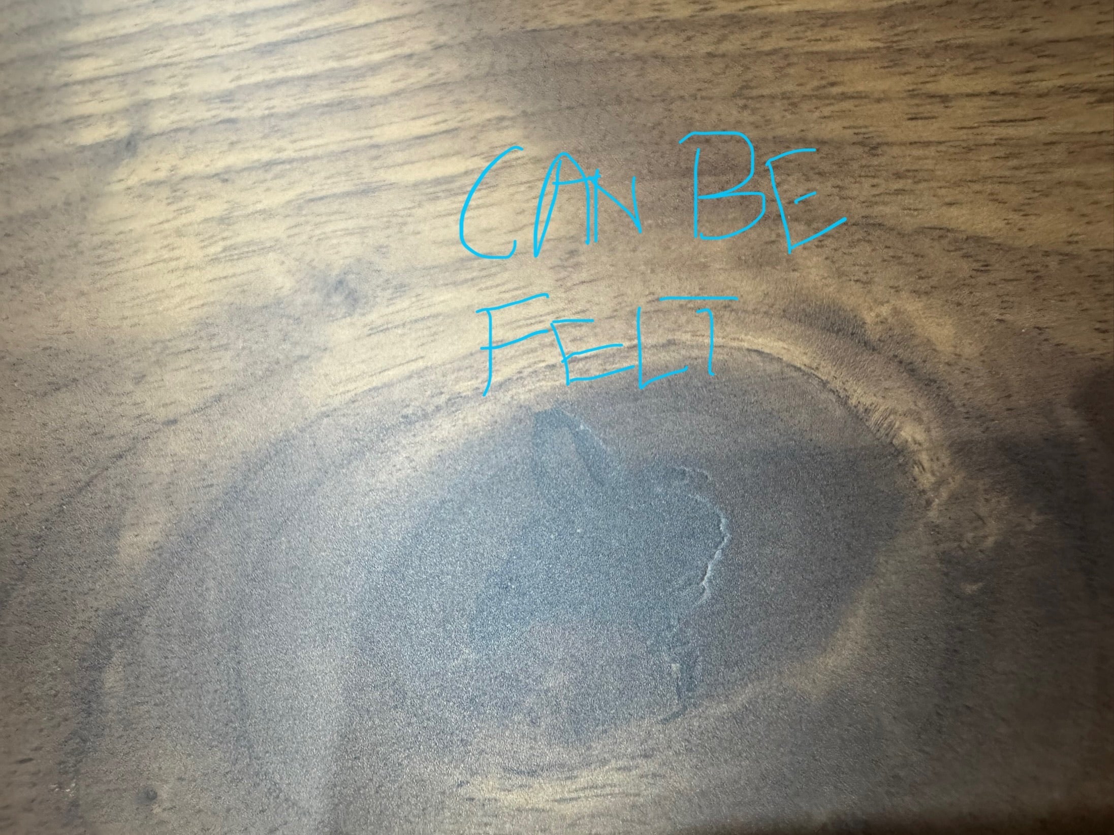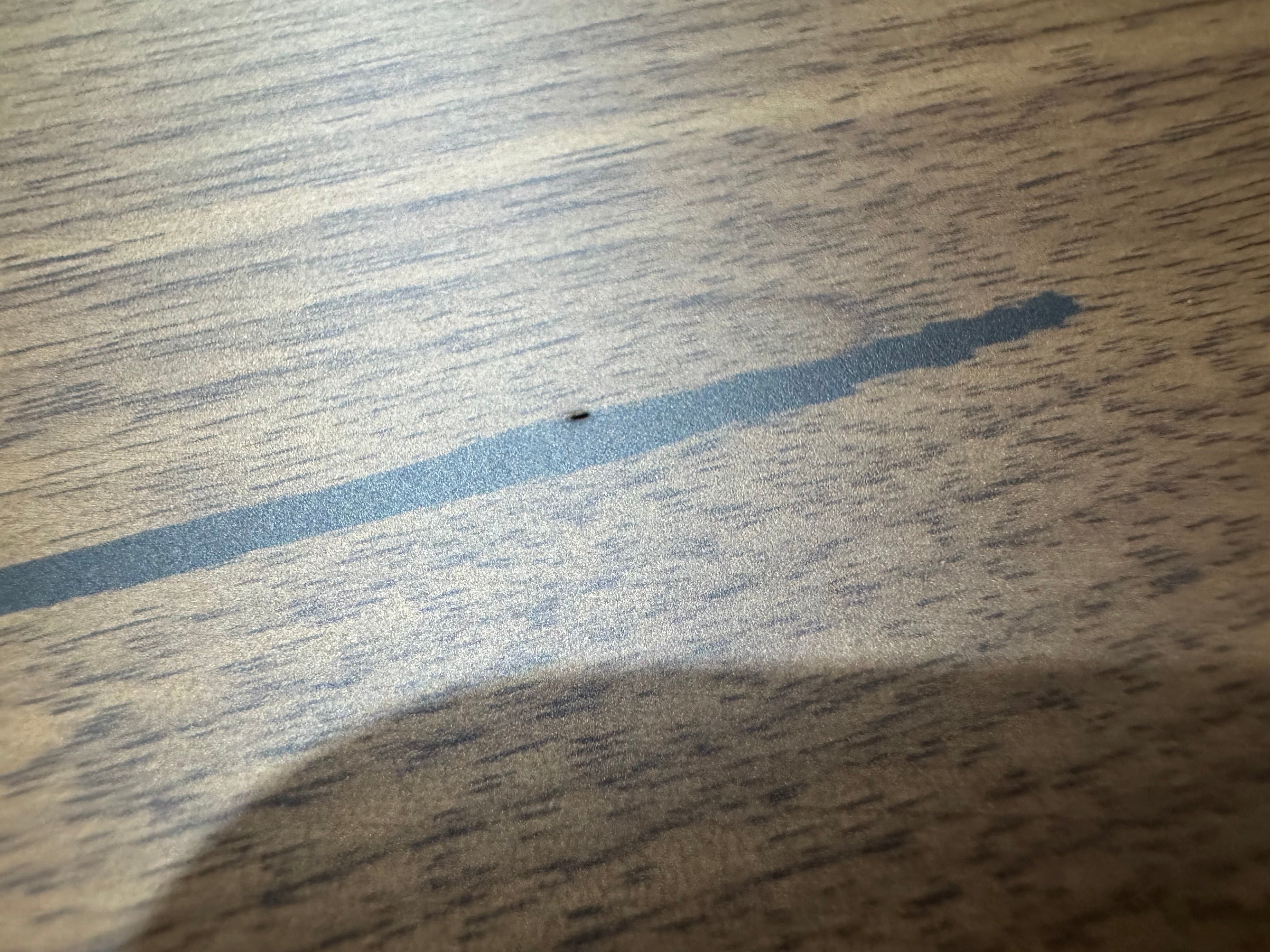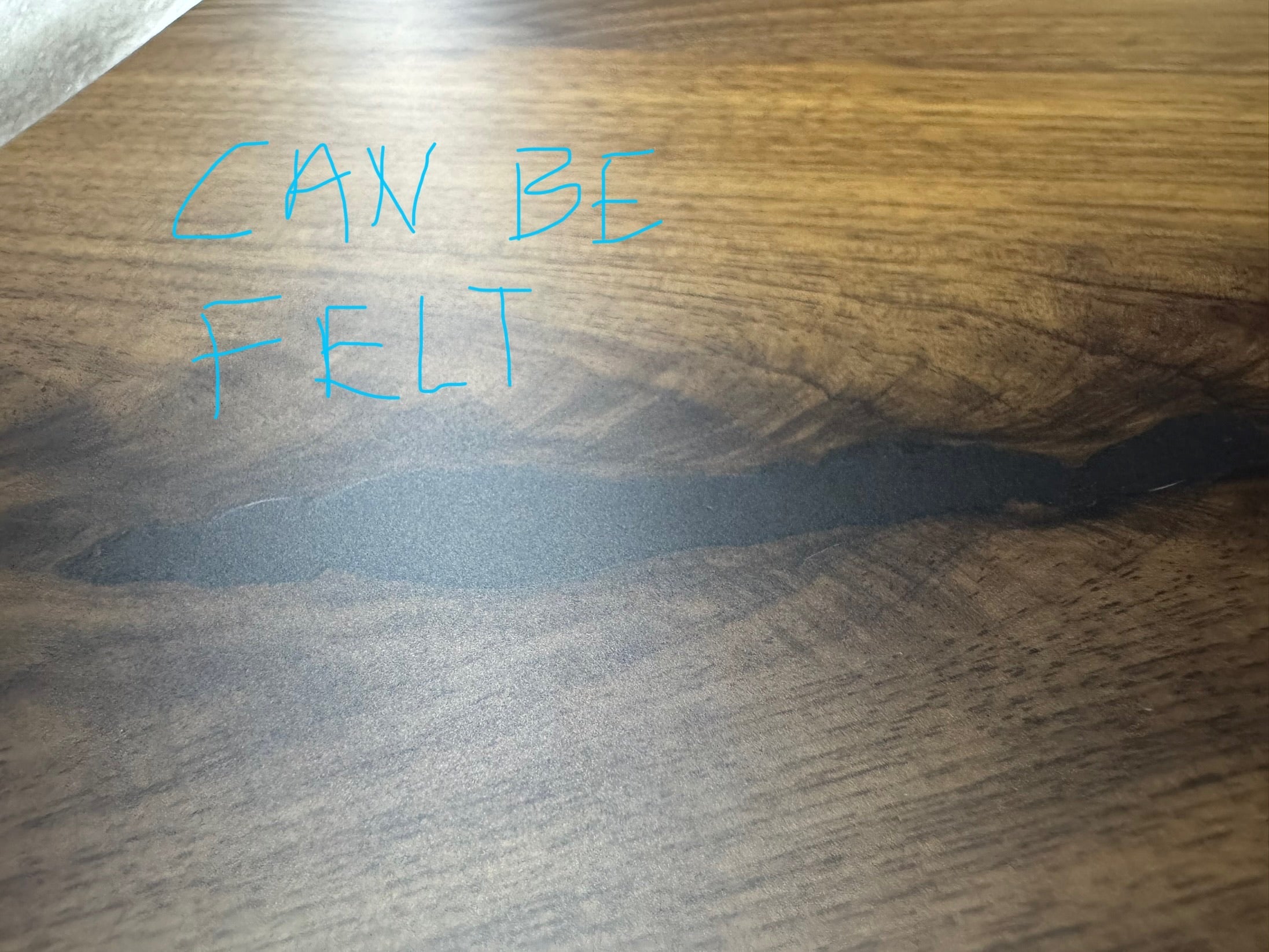 Table top has multiple small holes due to bubbles formed during the resin setting process, there is a small area with what looks like a bur on the table top.