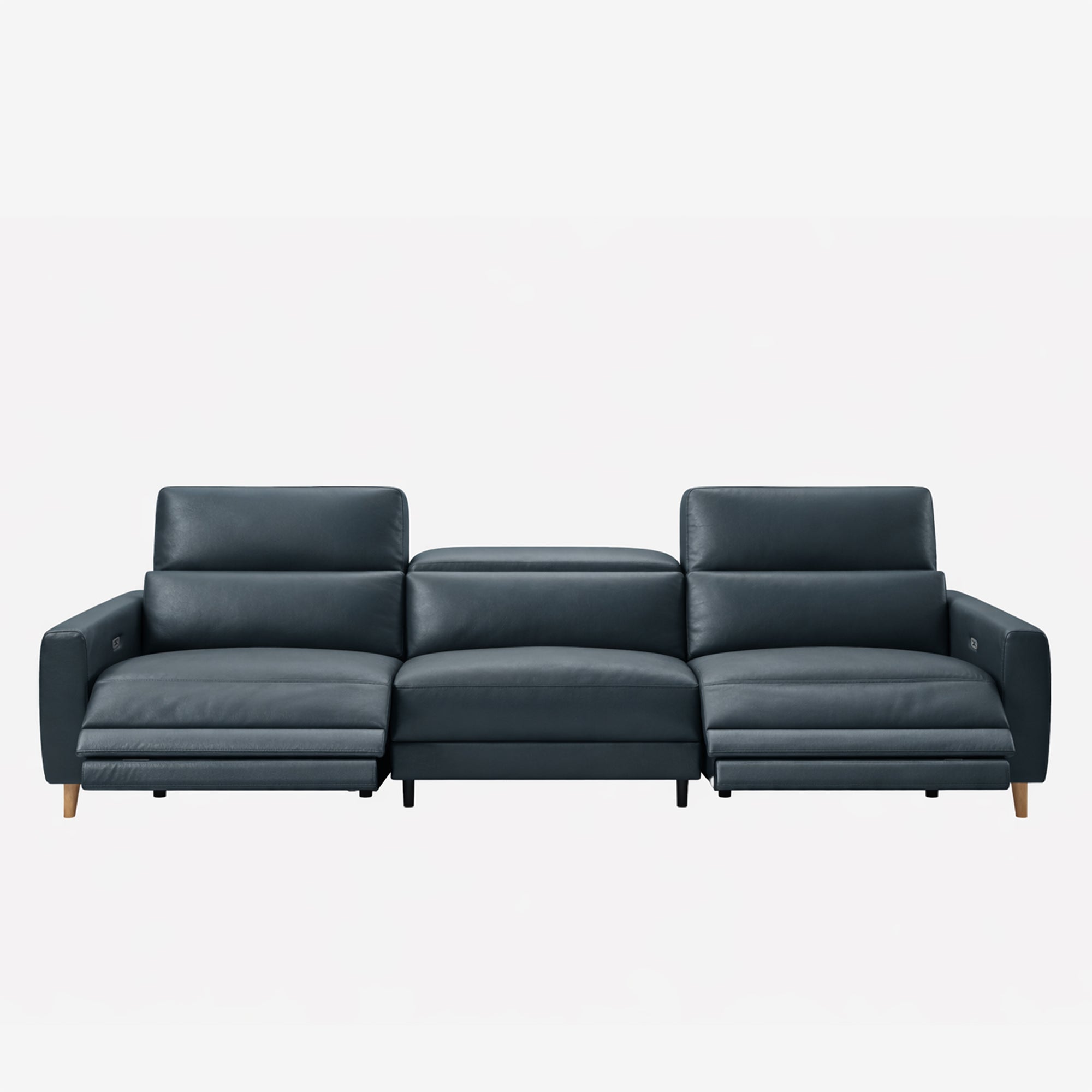 The Hampton 4 Seater Leather Recliner Sofa is crafted for modern living, balancing comfort and convenience. It features a smooth incliner mechanism, firm leather cushions, and discreet USB-C charging ports. At 251cm or 276cm, it comfortably seats up to 4 people.