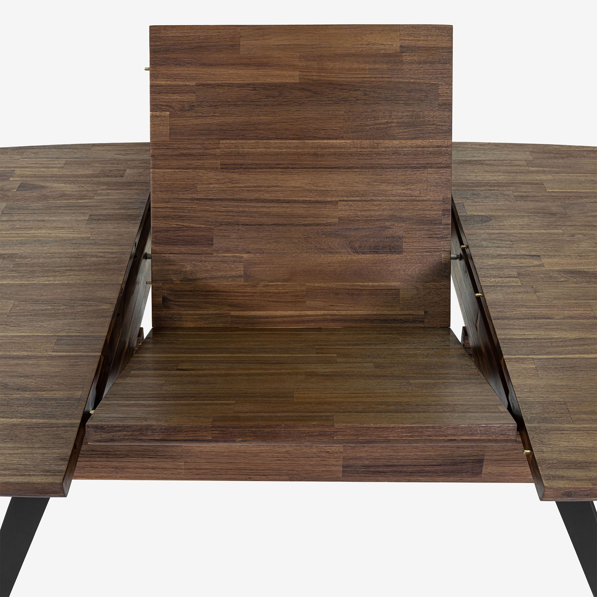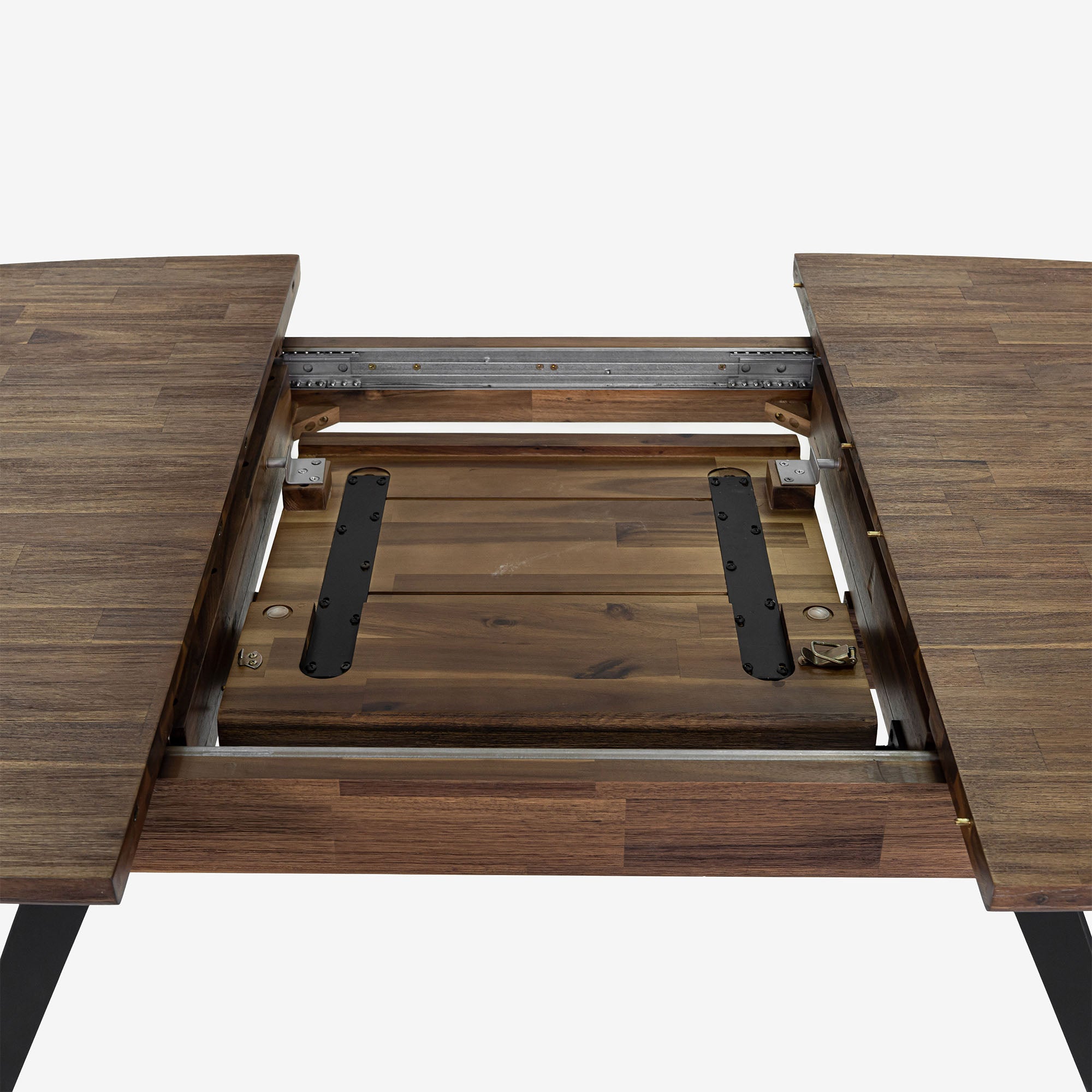 Designed for any occasion, the Hudson Dining Table extends easily to fit both large and compact spaces. Smooth curves, a solid Acacia wood top, and black steel legs combine natural warmth with industrial strength — bringing balance to any dining space.
