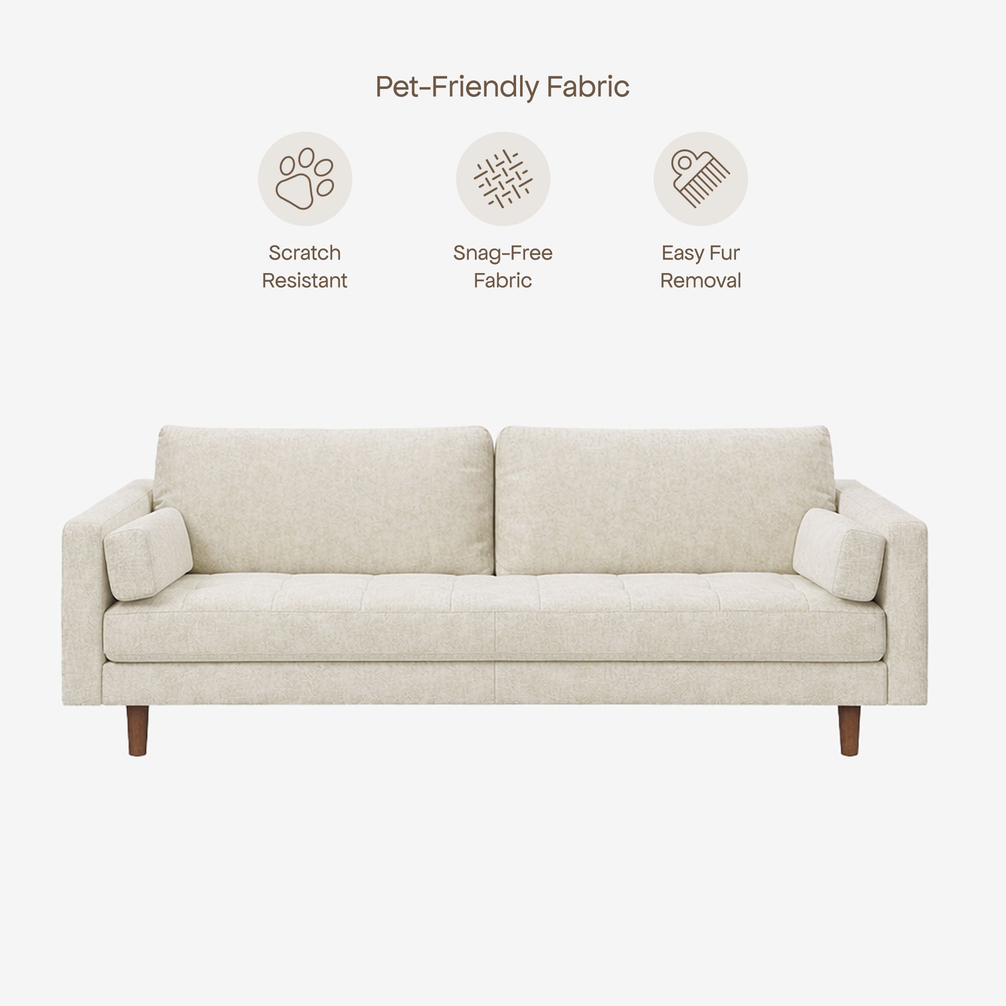 The Hugh 3 Seater Fabric Sofa blends mid-century charm with modern comfort. Tufted cushions deliver a cozy, refined feel, while independent armrest cushions and an attachable headrest ensure personalised comfort. At 193cm or 213cm, it offers ample space for 3.