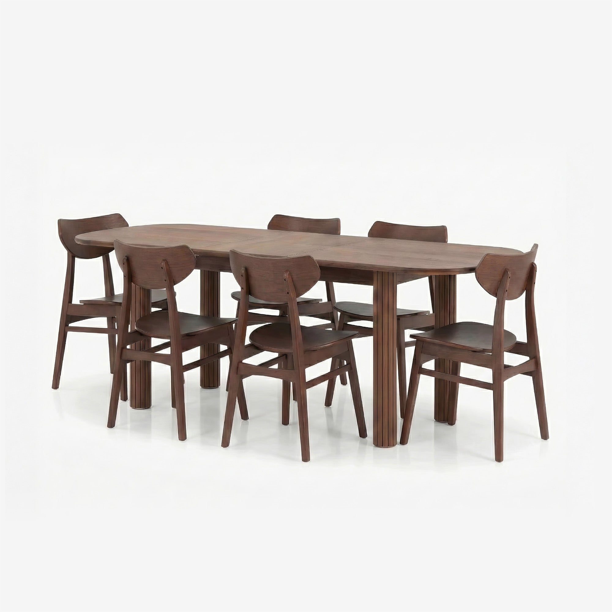 Ipanema Extendable Dining Table Set pairs a solid dark wood extendable table with 4 to 6 Clifton Dining Chairs. The discreet extension mechanism lets the table shift seamlessly from daily meals to larger gatherings, while rich wood tones add warmth and depth.