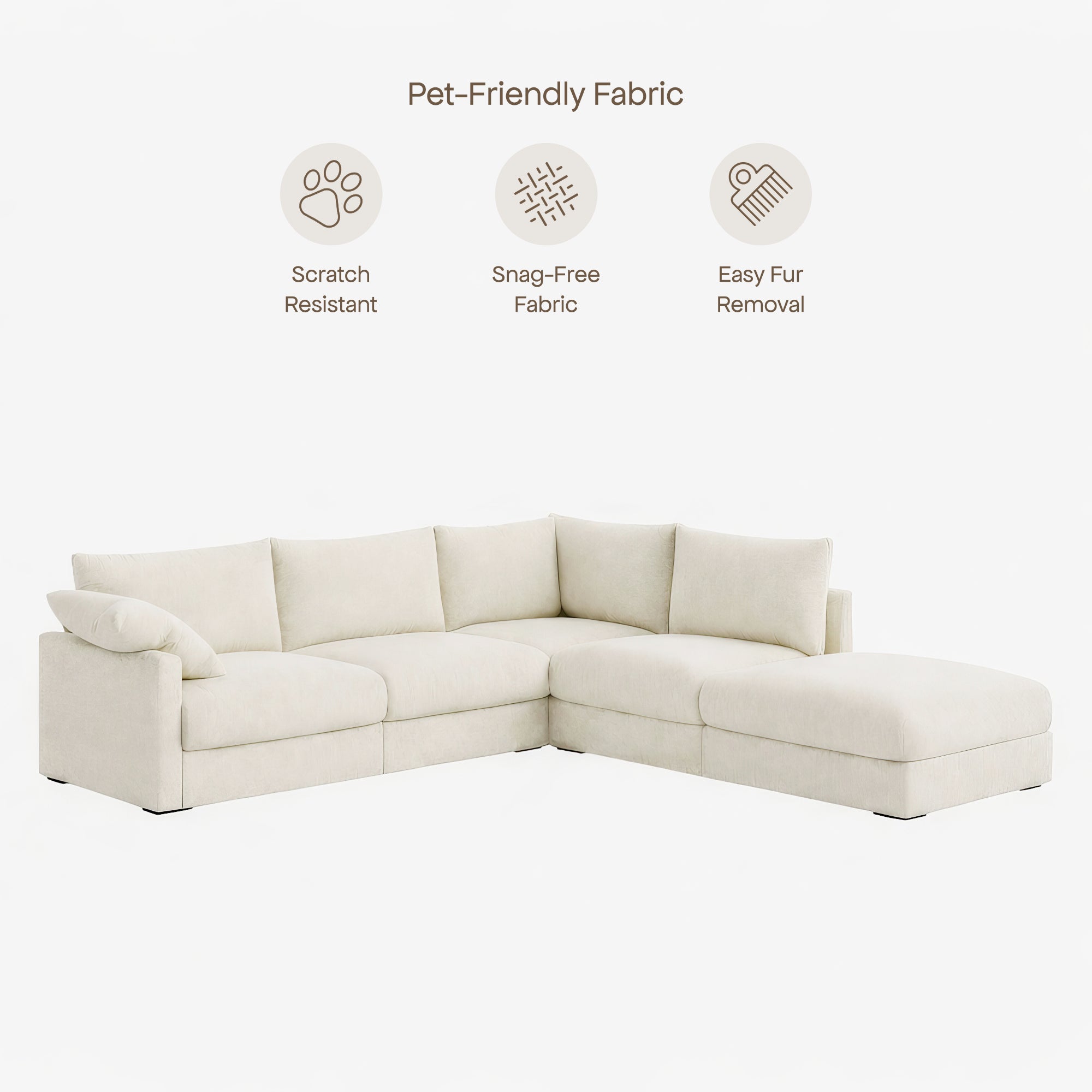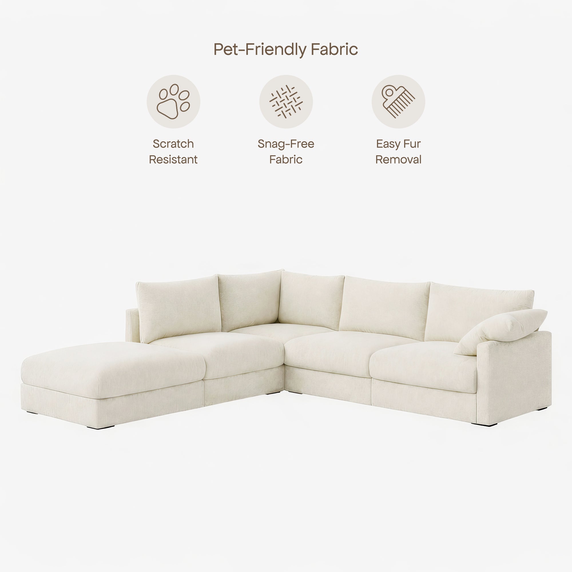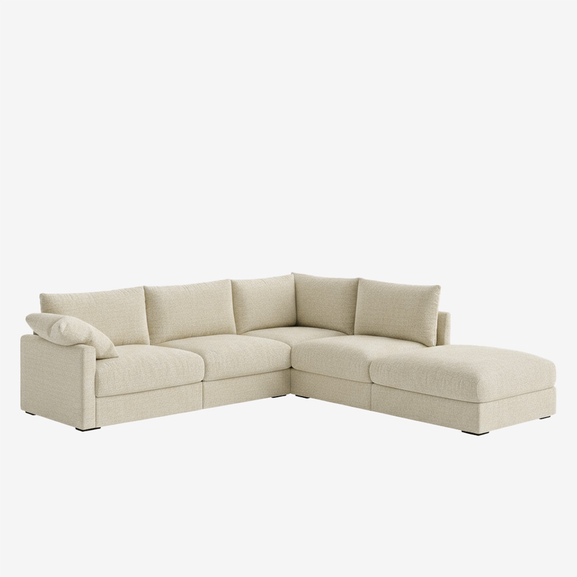 The Melo Sectional Fabric Sofa pairs minimalist design with plush comfort. Deep cushions wrapped in soft fabric invite you to sink in, while its neutral palette suits any interior. Spacious and modular, it can be easily rearranged to fit your space and lifestyle.
