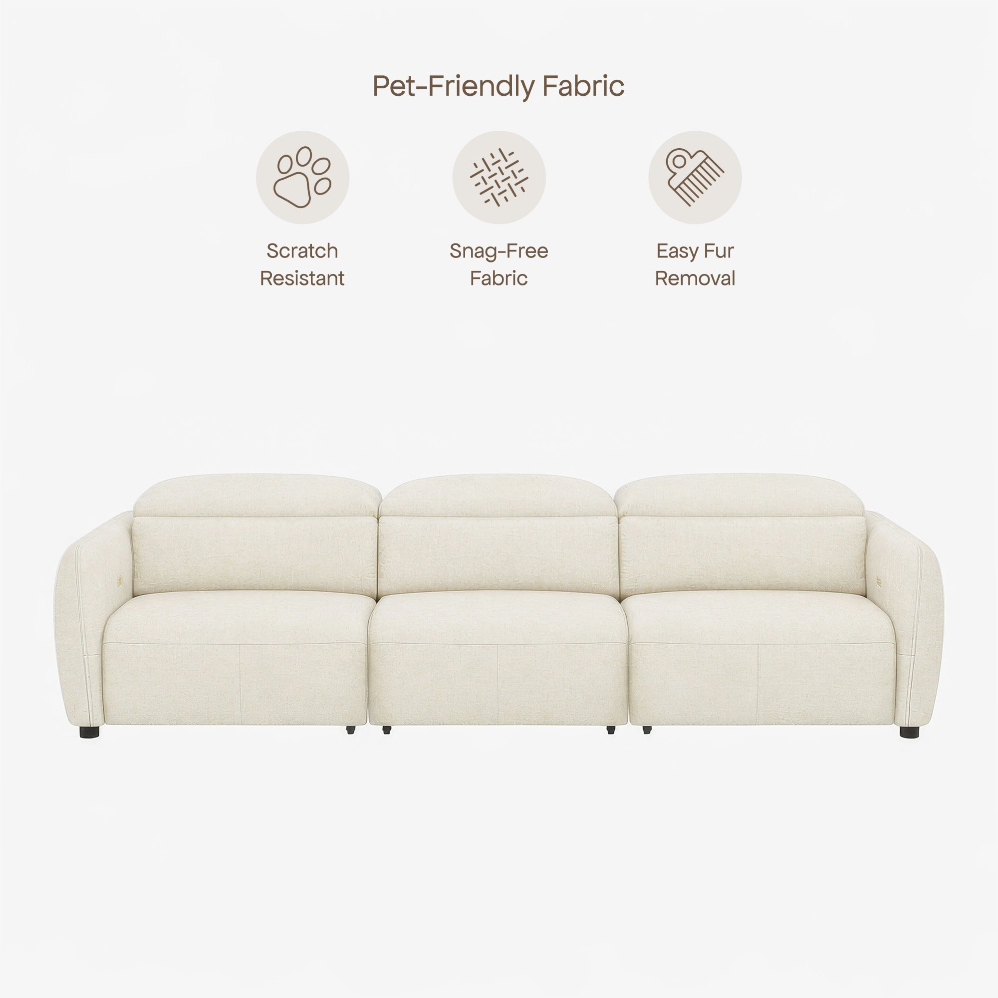 The Nido 4 Seater Recliner Sofa invites you into comfort reimagined. Gentle curves embrace its fabric silhouette, unfolding into a bed for lounging or slumber. With spacious seating for 4 and discreet USB ports at each end, it’s where thoughtful design meets modern living.